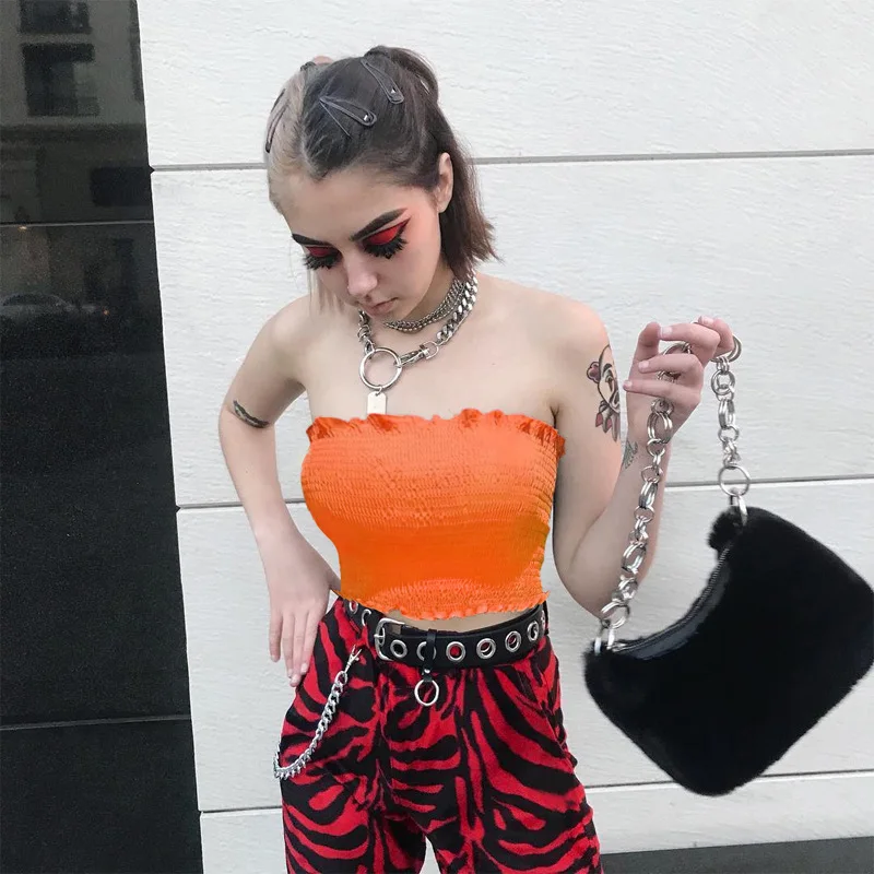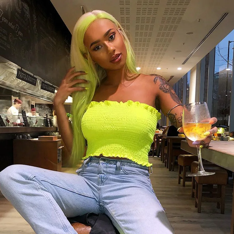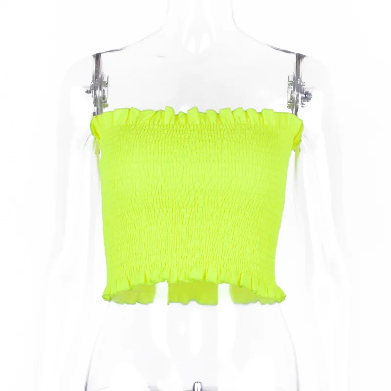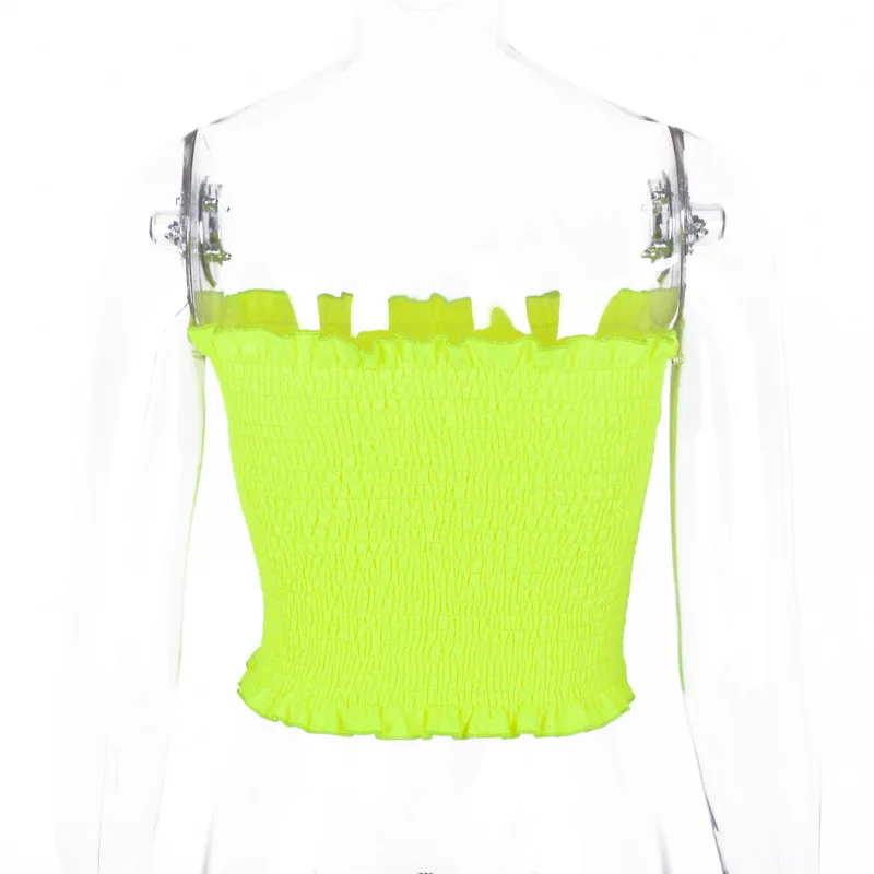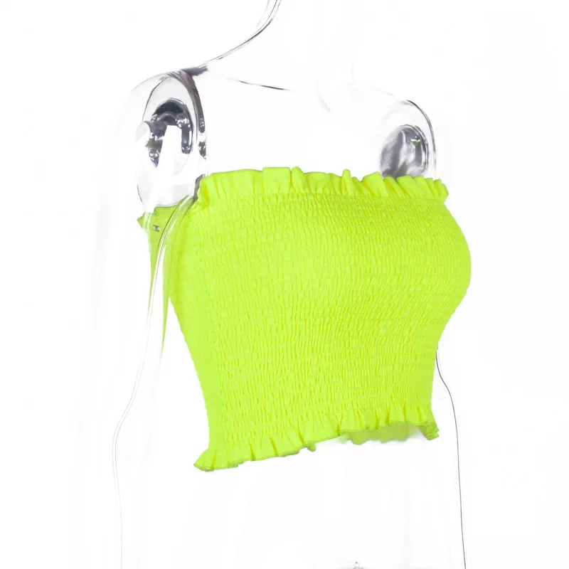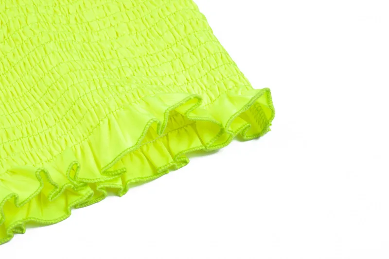 FREE SHIPPING Ruffles Neon Green Orange Tube Top Clubwear JKP1454