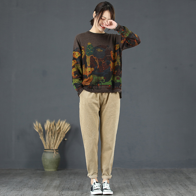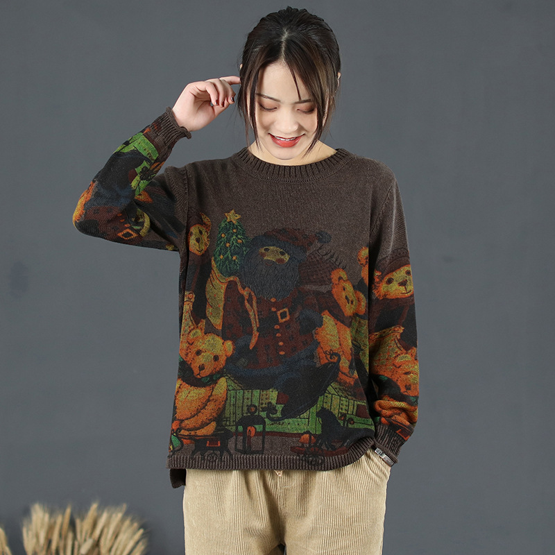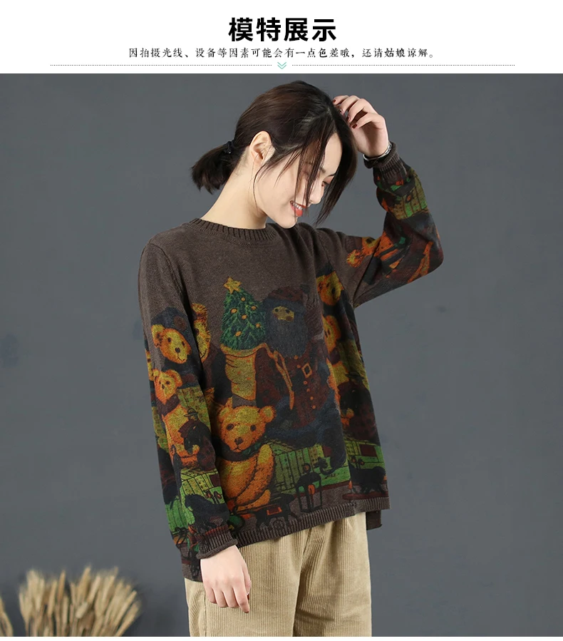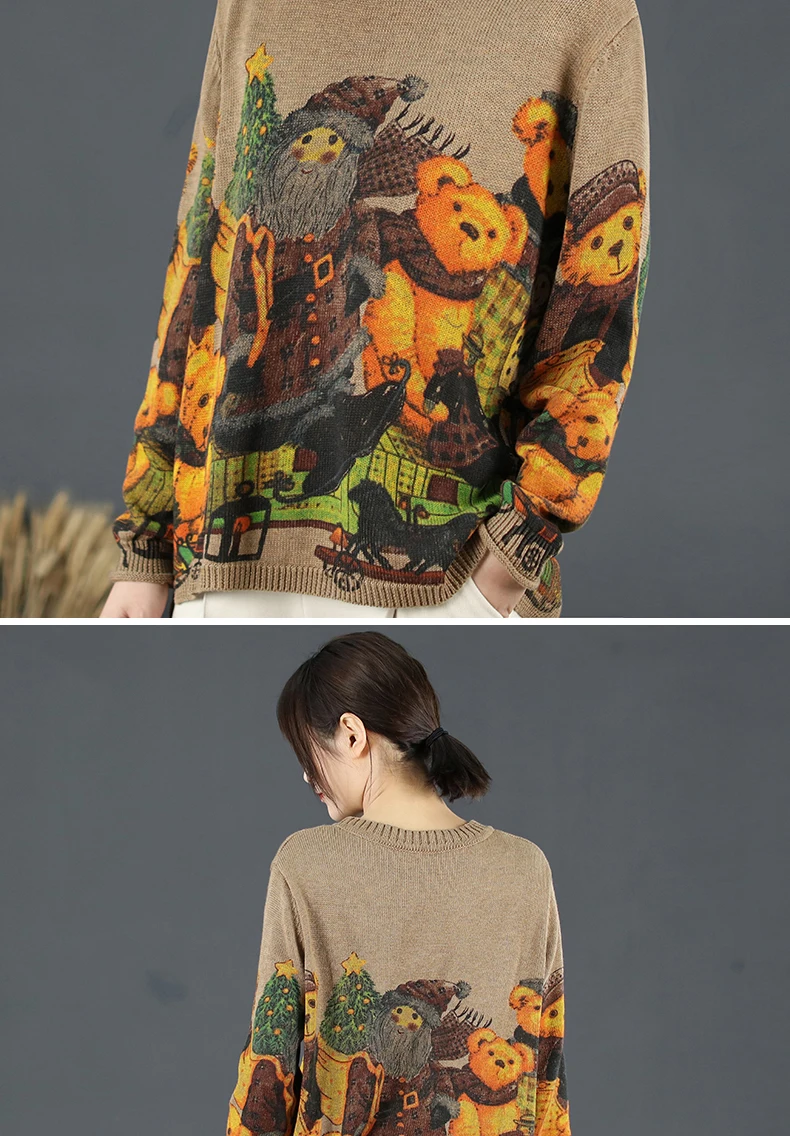 FREE SHIPPING Santa Claus Bear Printed Pattern Women Sweater Loose Thin Outerwear Harajuku Cartoon Bottoming Pullovers Knitted Tops Femme Pull JKP2932