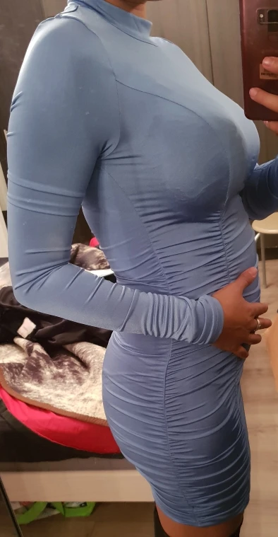 The dress of course it was better to take the size L, very tight, but when straighten on yourself, then sits like a second skin, the quality is excellent, very chic on the way out to dress, I recommend everyone, the dress is super