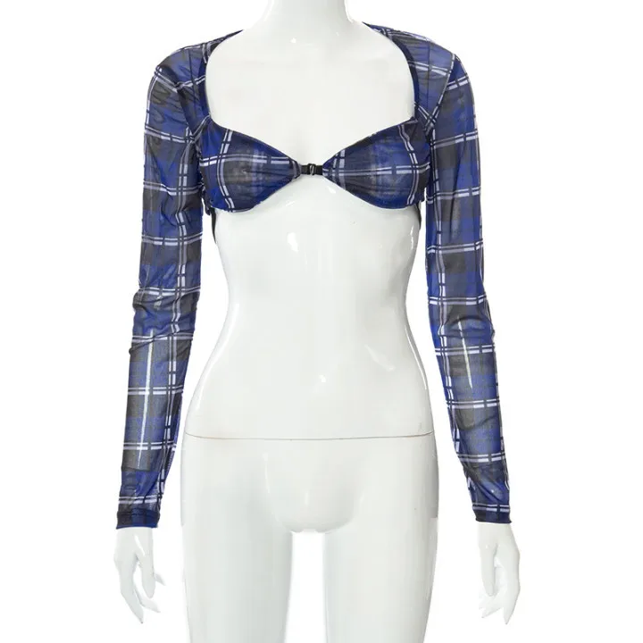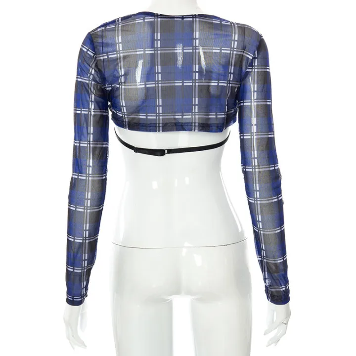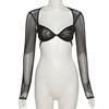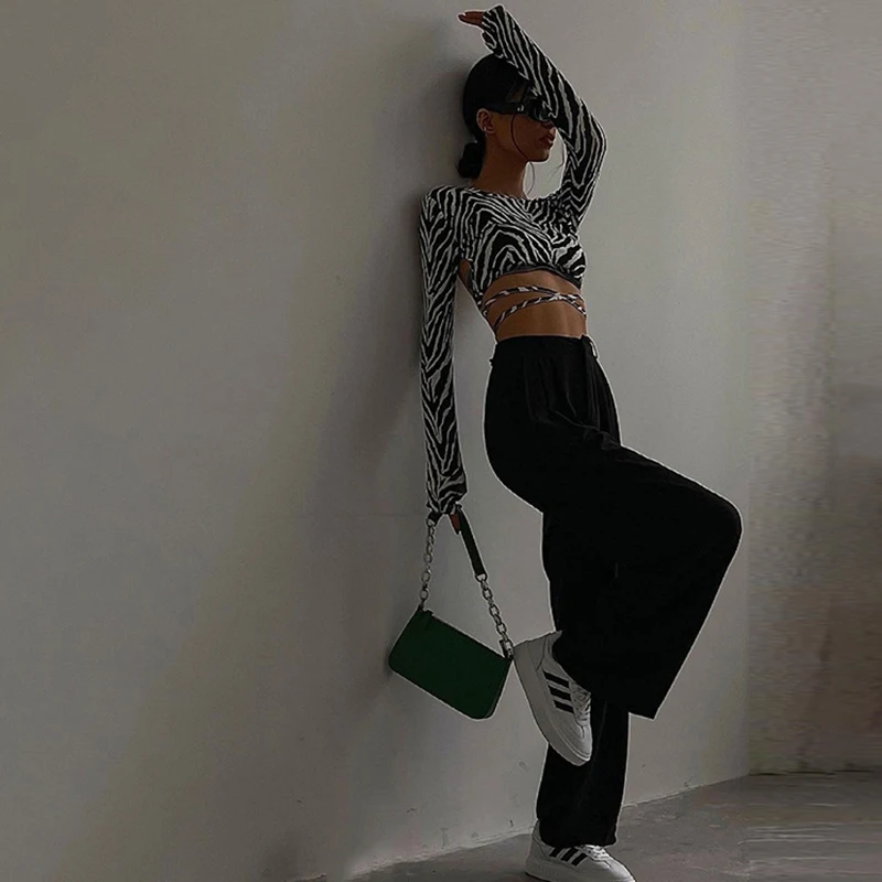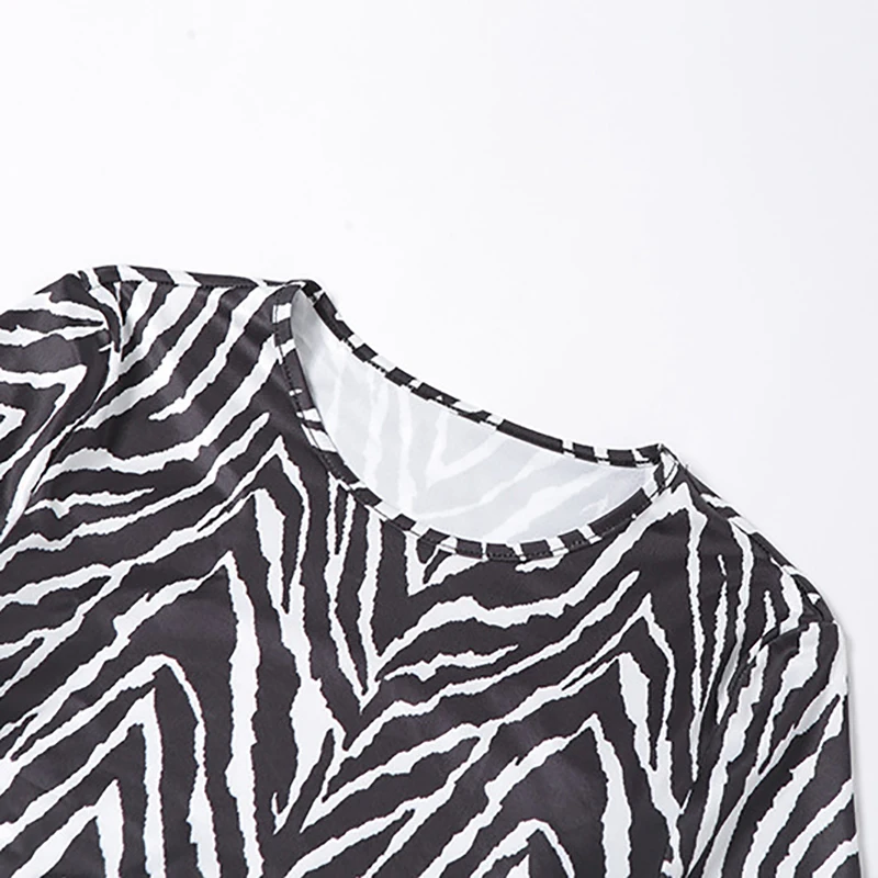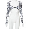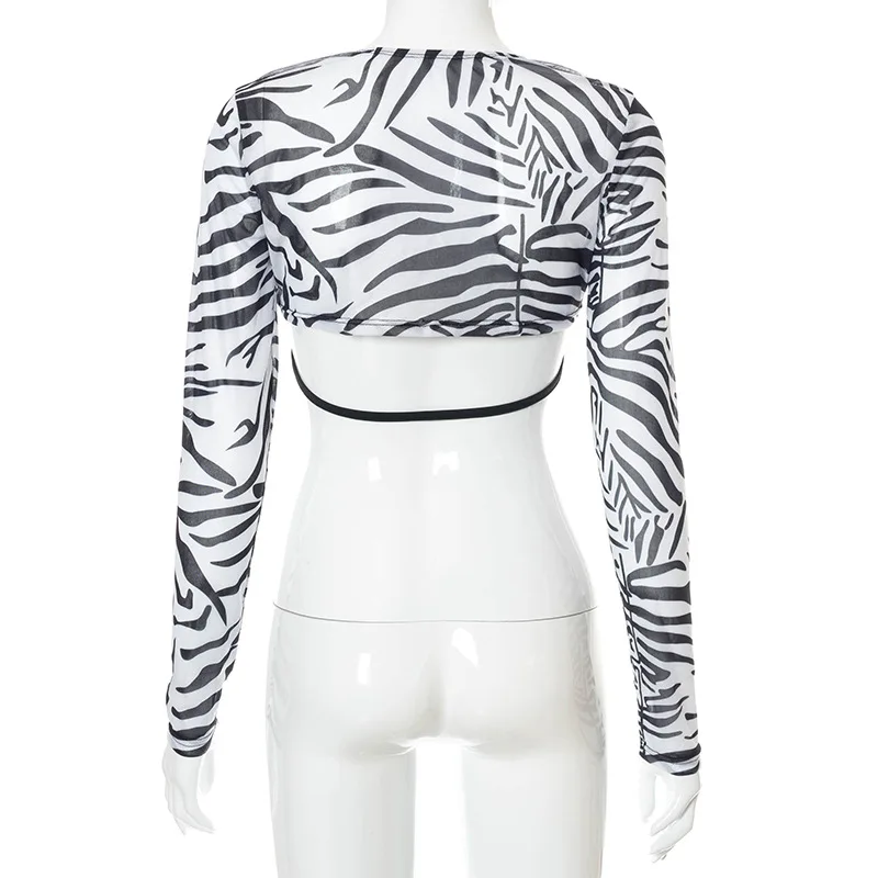 FREE SHIPPING See Through Mesh Crop Tops Long Sleeve Zebra Print JKP4775