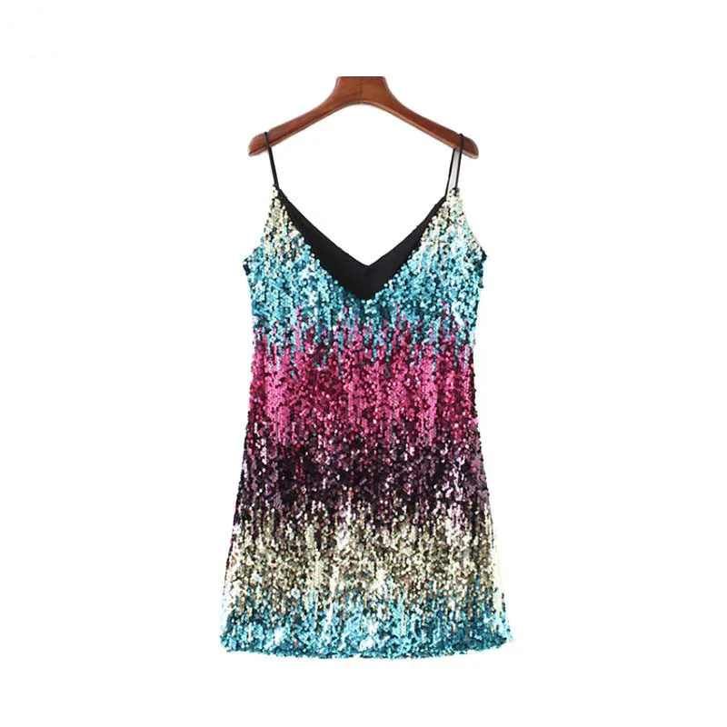 The package came in a branded zip-package. there was no unpleasant smell. The quality of the dress is awesome, the seams and stitches are even, there are no protruding threads. Sequins are sewn well, nothing falls off. very beautifully shimmer in the sun. beautiful transition of flowers. To the body the fabric is pleasant nothing pricked. Straps are not adjustable. I buy in this store for the second time, the quality is excellent. On og95, ot82, ob100 and height 158 size m sat well.