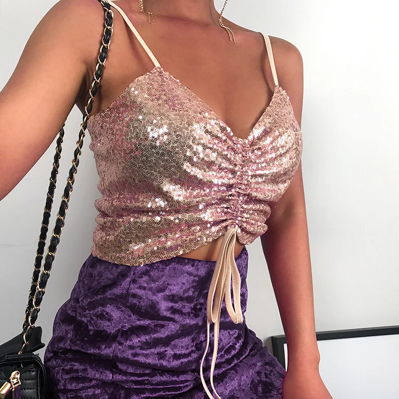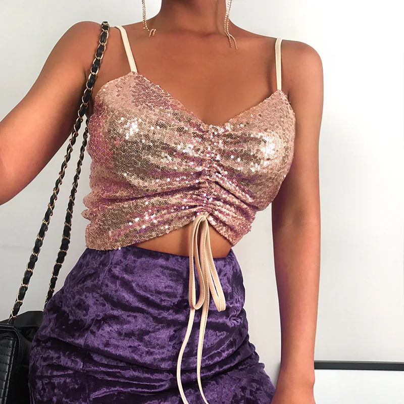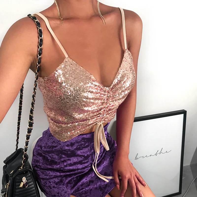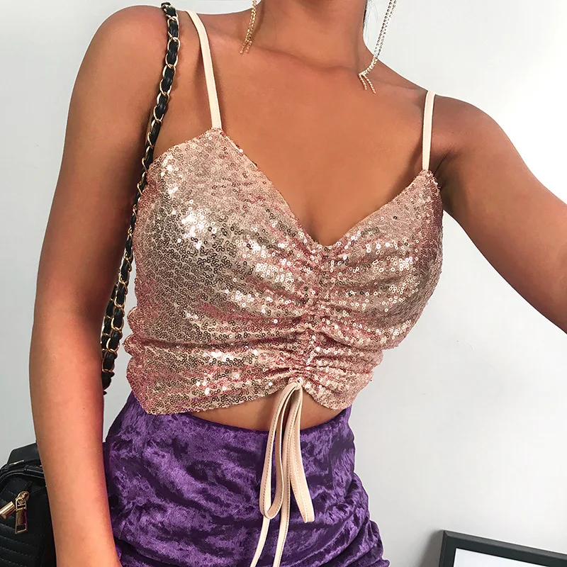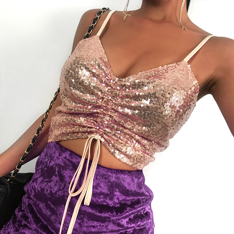 FREE SHIPPING Sequined Glitter Spaghetti Strap Bandage Tank Tops JKP3132