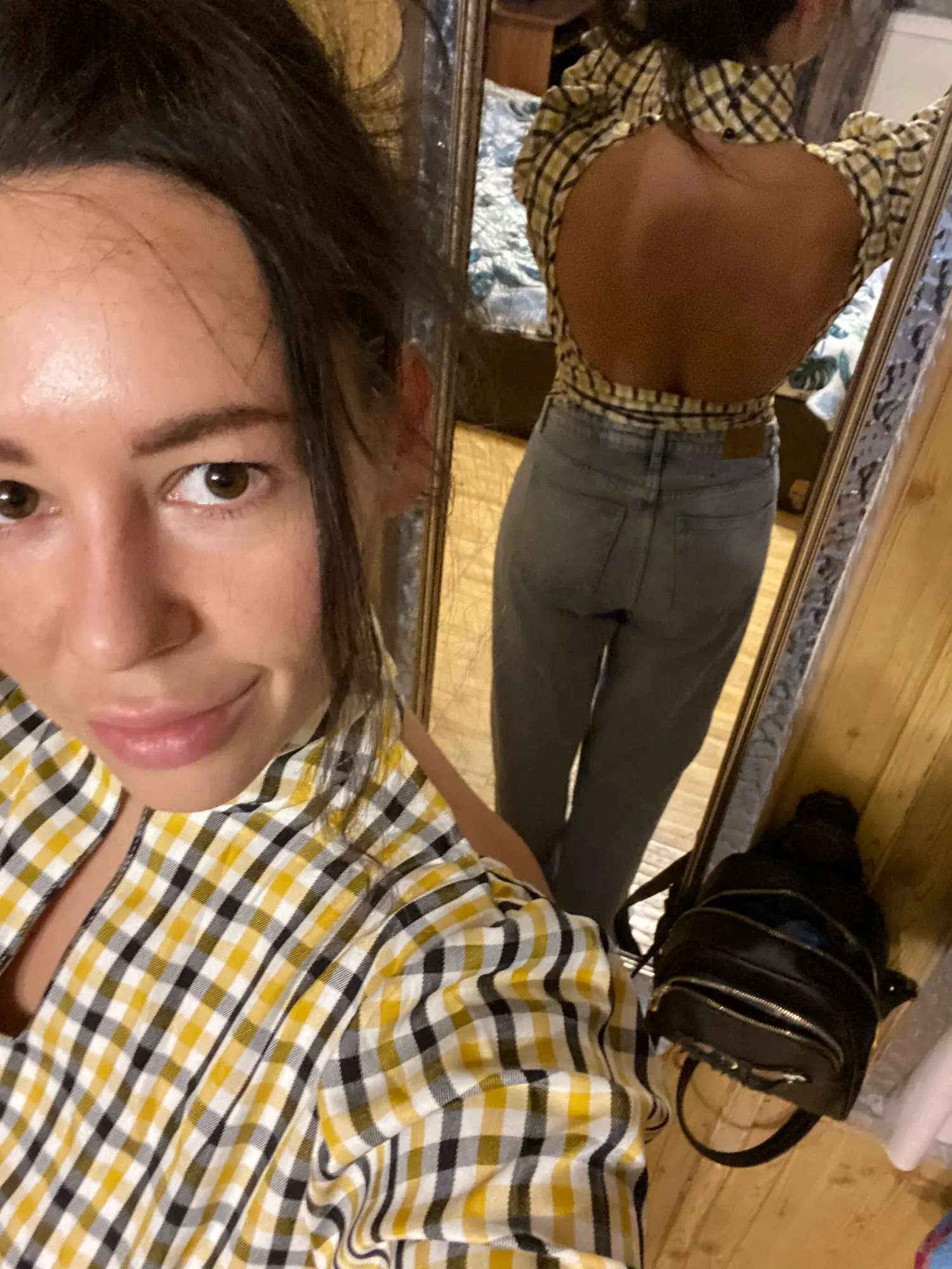 FREE SHIPPING Sexy Backless Plaid Shirts JKP4458