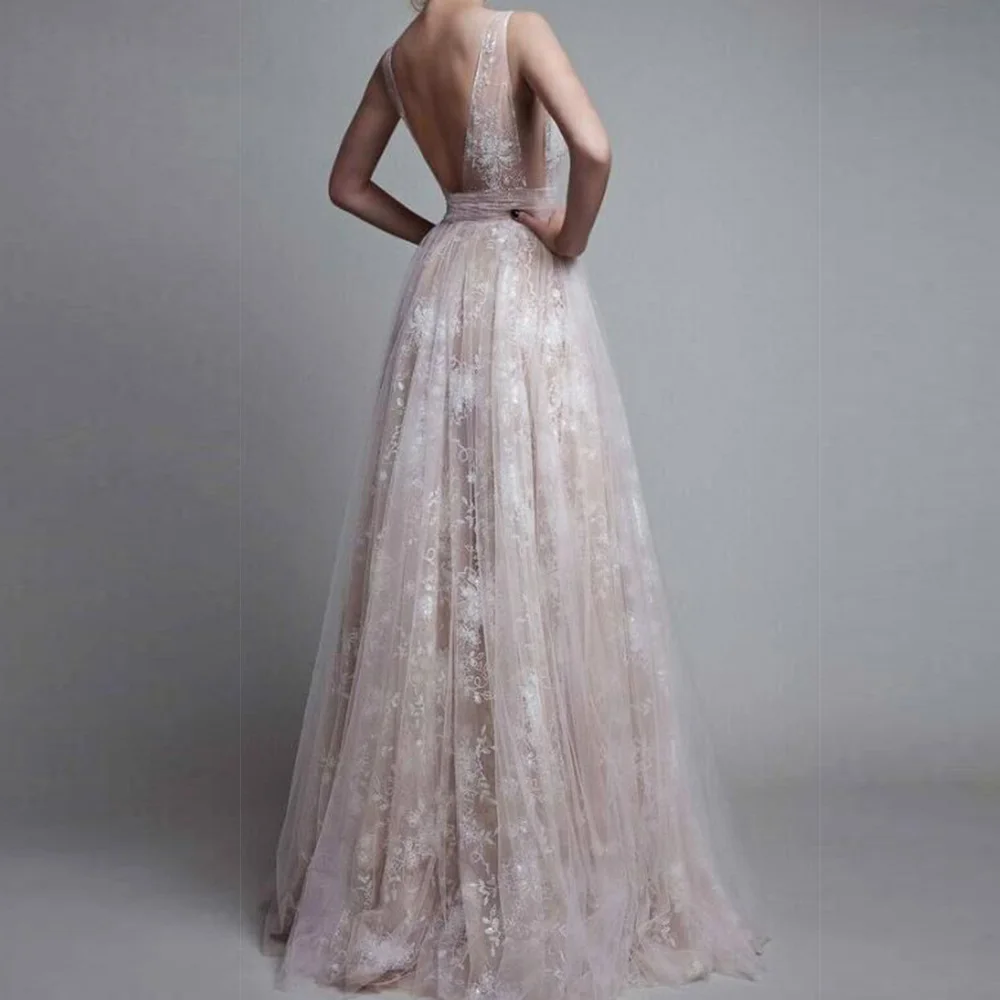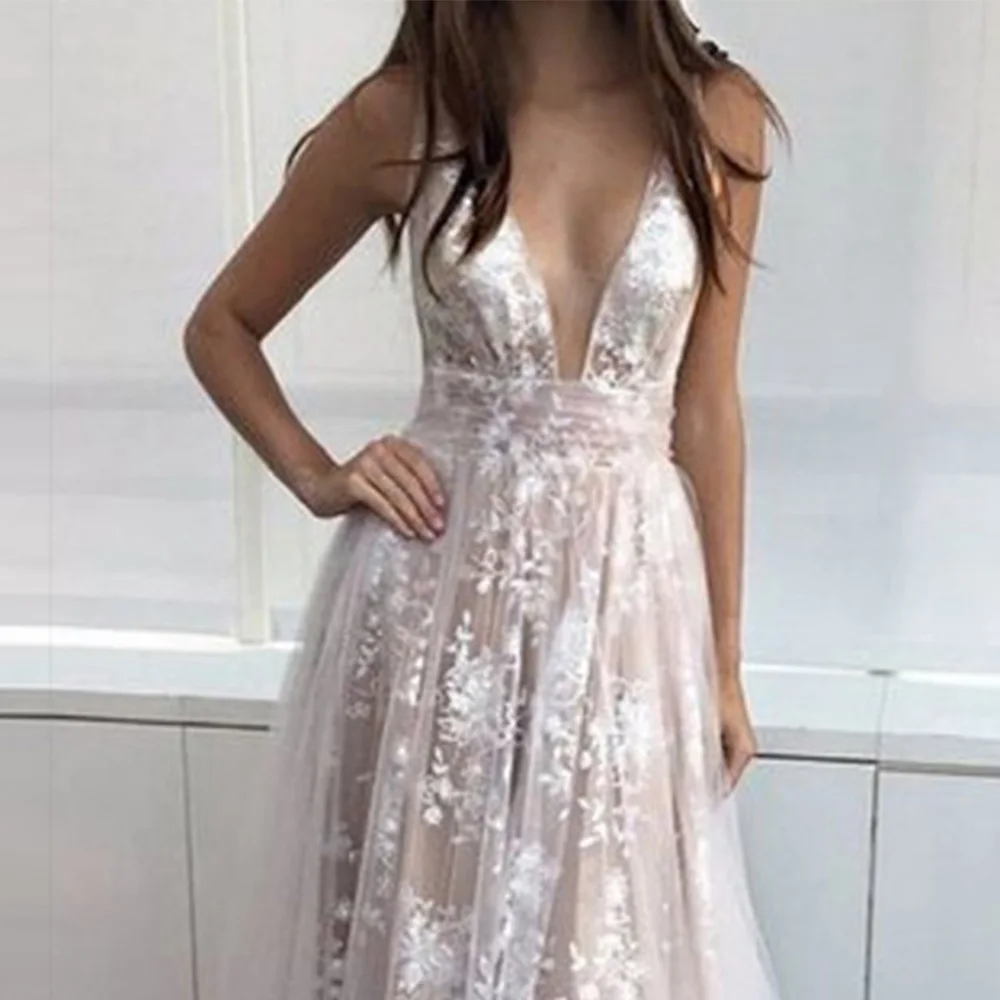 * Item Description:New Women Ladies Sexy Deep Neck Backless Party Evening Lace Long Maxi Dress
