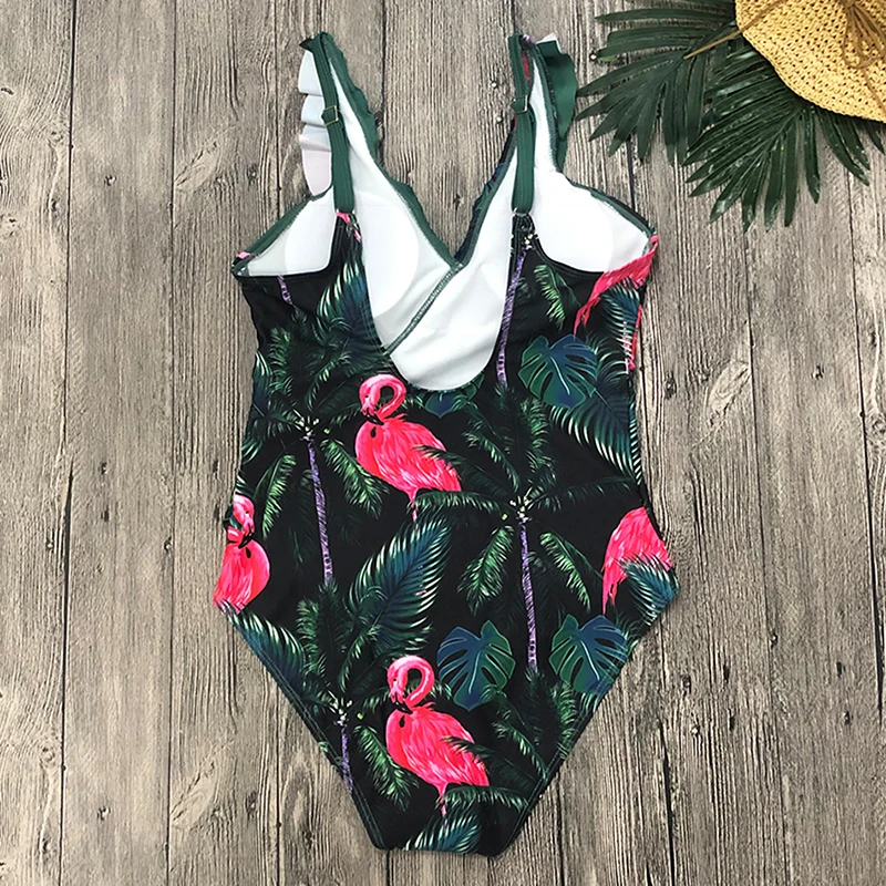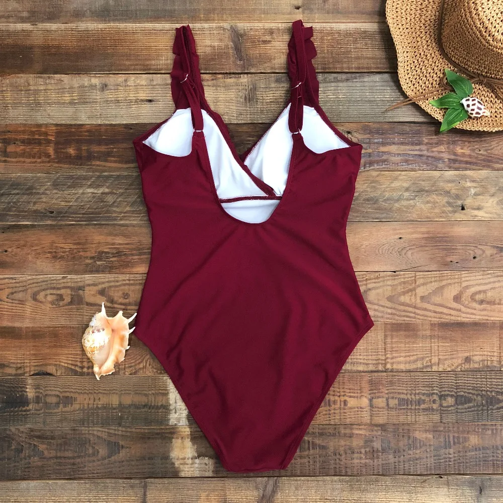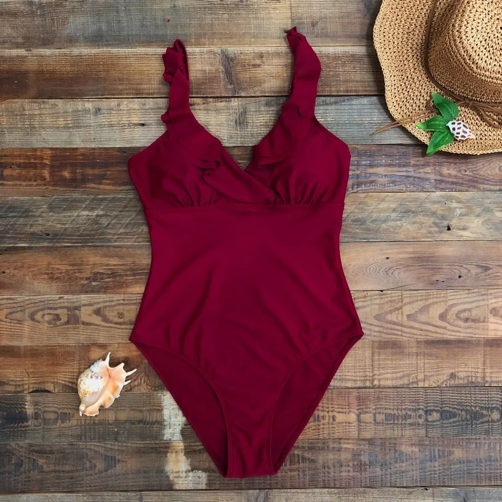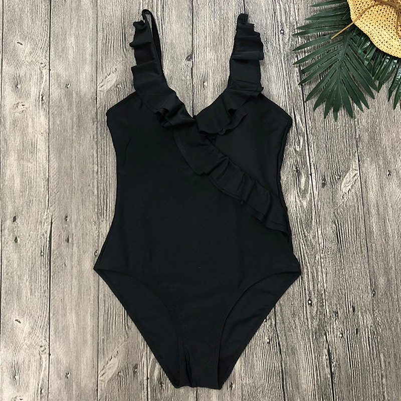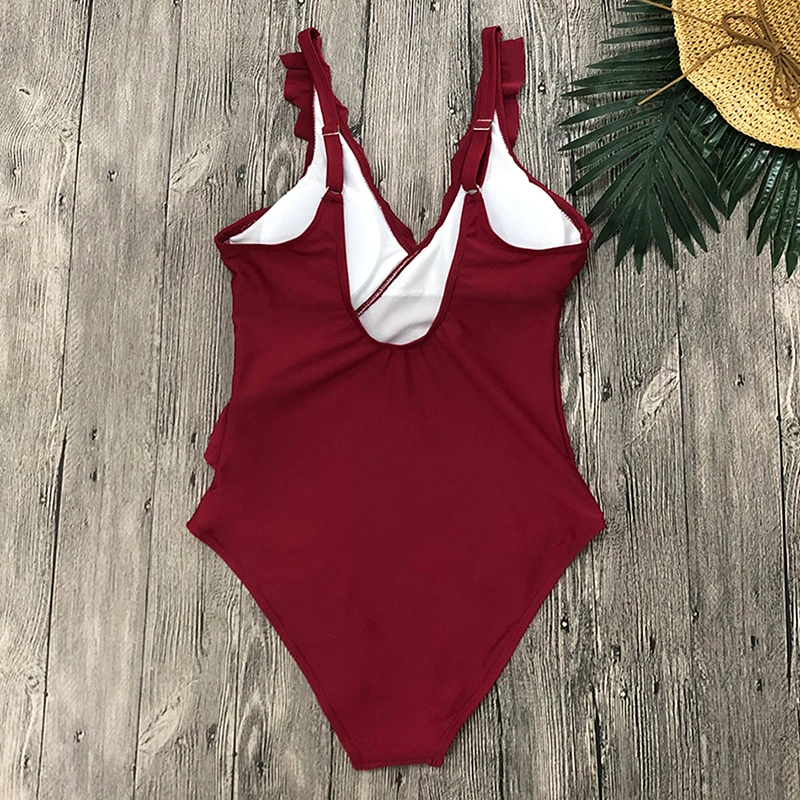 FREE SHIPPING Sexy Deep-V One Piece Swimsuit Female Women Vintage Retro Swimwear High Neck Bandage Ruffle Backless Monokini JKP2388