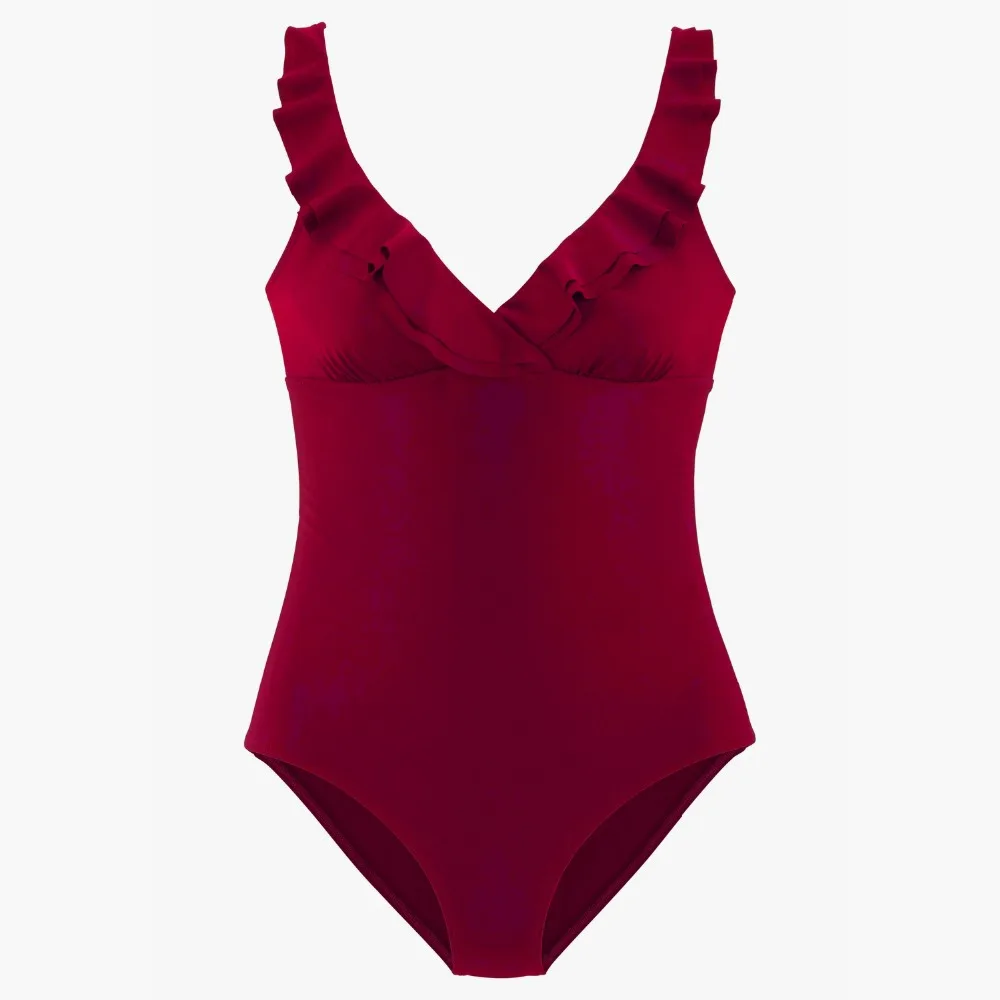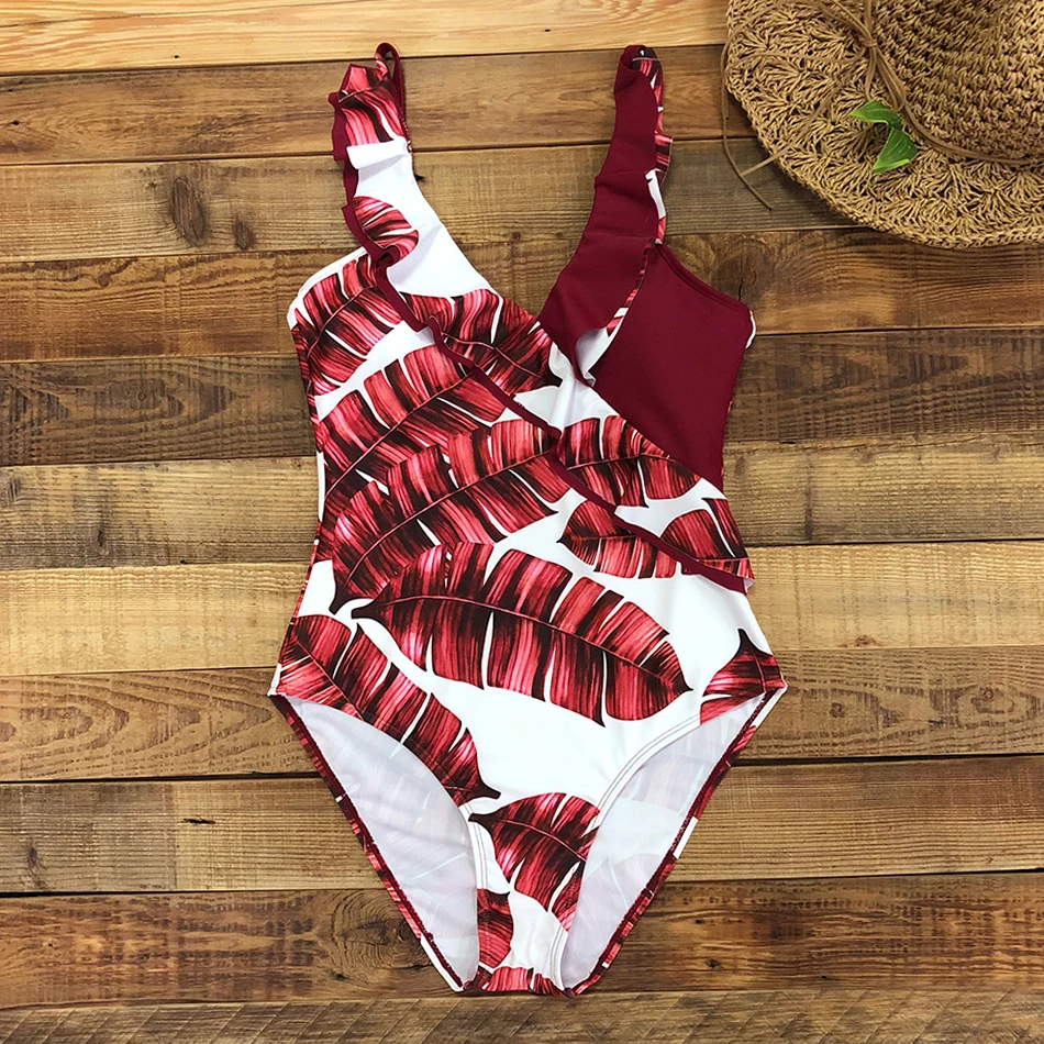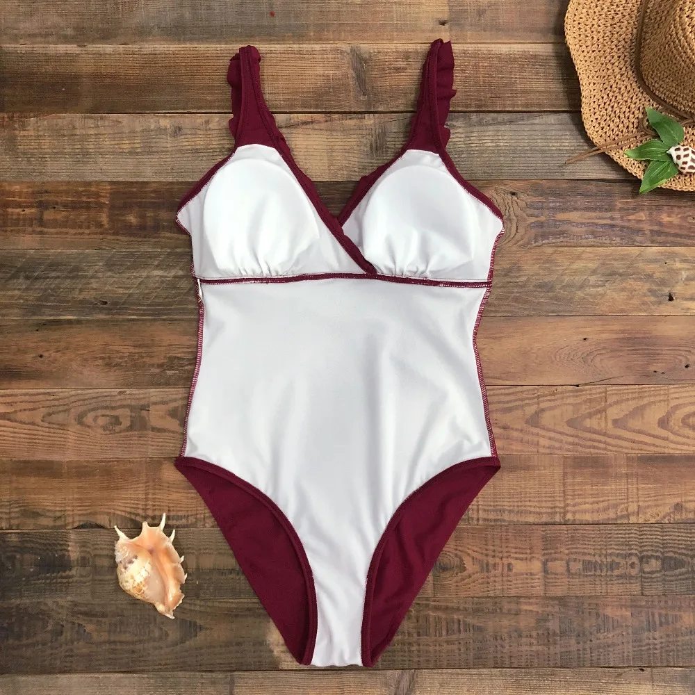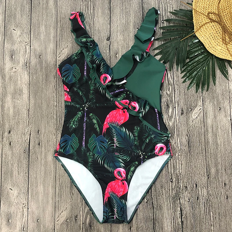 FREE SHIPPING Sexy Deep-V One Piece Swimsuit Female Women Vintage Retro Swimwear High Neck Bandage Ruffle Backless Monokini JKP2388
