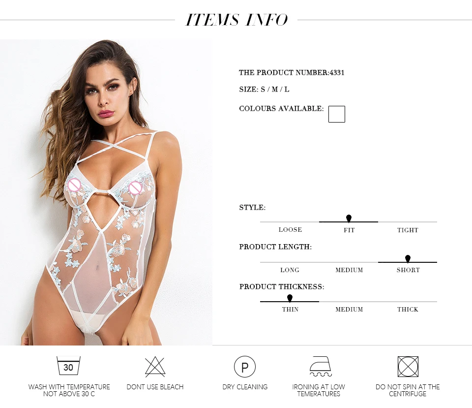 FREE SHIPPING Sexy Lace Bodysuit Floral Embroidery Mesh Romper Jumpsuit JKP2721