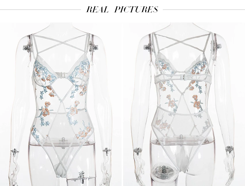 FREE SHIPPING Sexy Lace Bodysuit Floral Embroidery Mesh Romper Jumpsuit JKP2721
