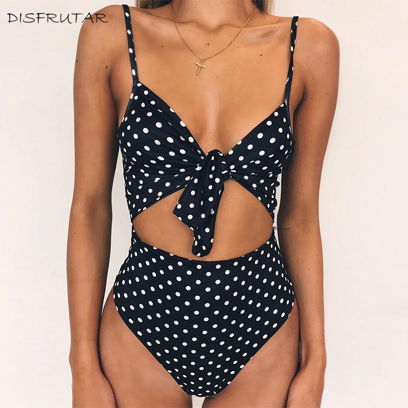 FREE SHIPPING Sexy Lace Up Polka Dot Printed Bandage Bodysuit JKP1223