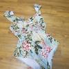 FREE SHIPPING Sexy Lady Retro Floral Crinkle V Neck Ruffle Swimwear Women One piece Swimsuit Female High Waist Swim Suit Monokini Trikini JKP2402