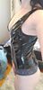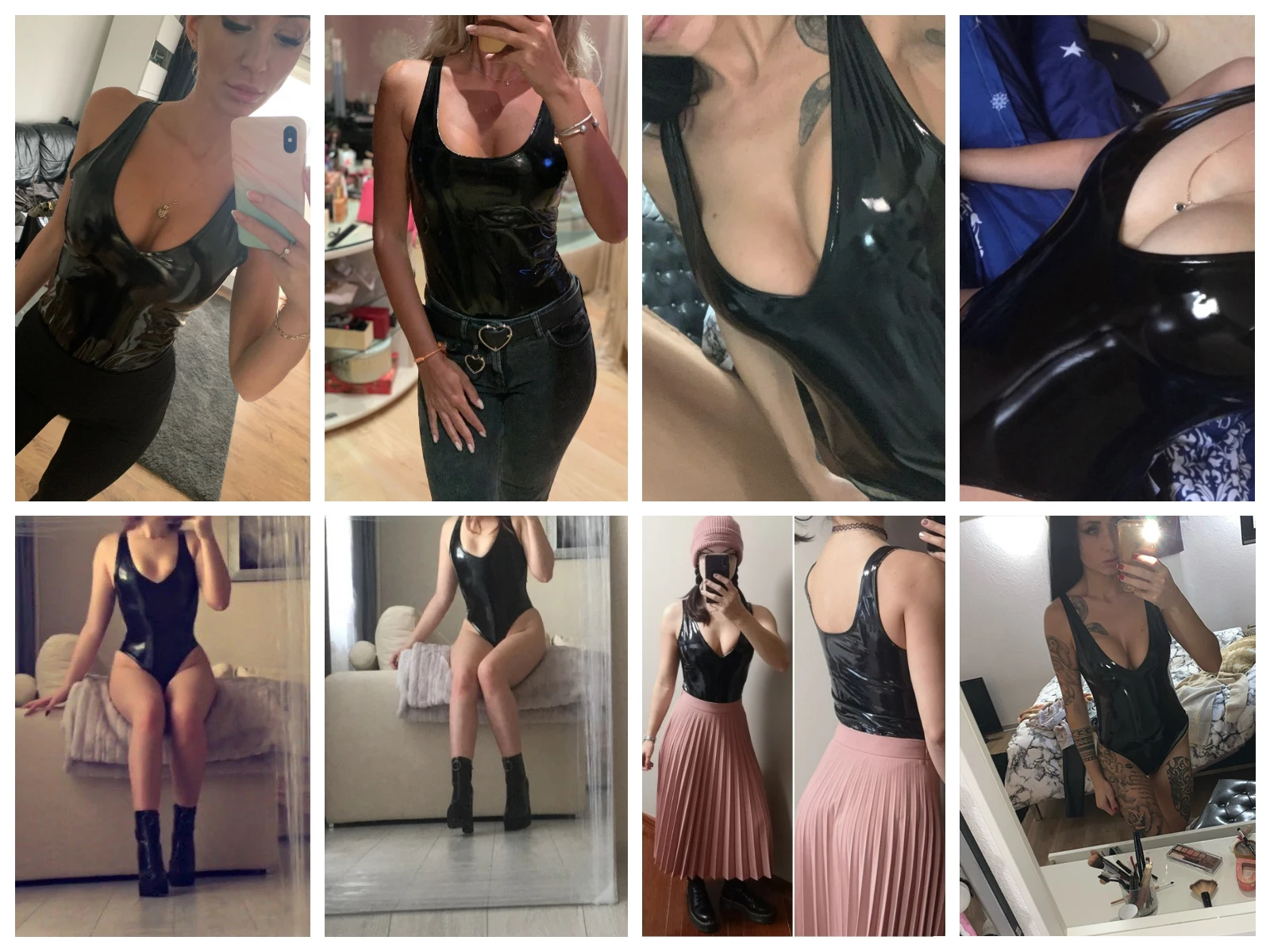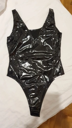 Got the large size on a whim even thought I’m normally XL and have a long torso (size 16 Tall, 36D for reference). This thing is SUPER stretchy!! On the hanger it looked like size S. I actually managed to get it on, but the length was sadly too short for me. Not the fault of the product, bodysuits are almost always too short for me. Size L would fit M-XL well depending on the length of your midsection. I’m planning to cut off the bottom and wear it as a top still because it’s super cute. This fabric type does not breathe well but it’s cute for short term wear or photos!