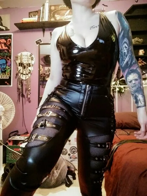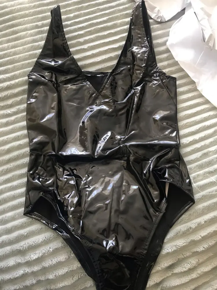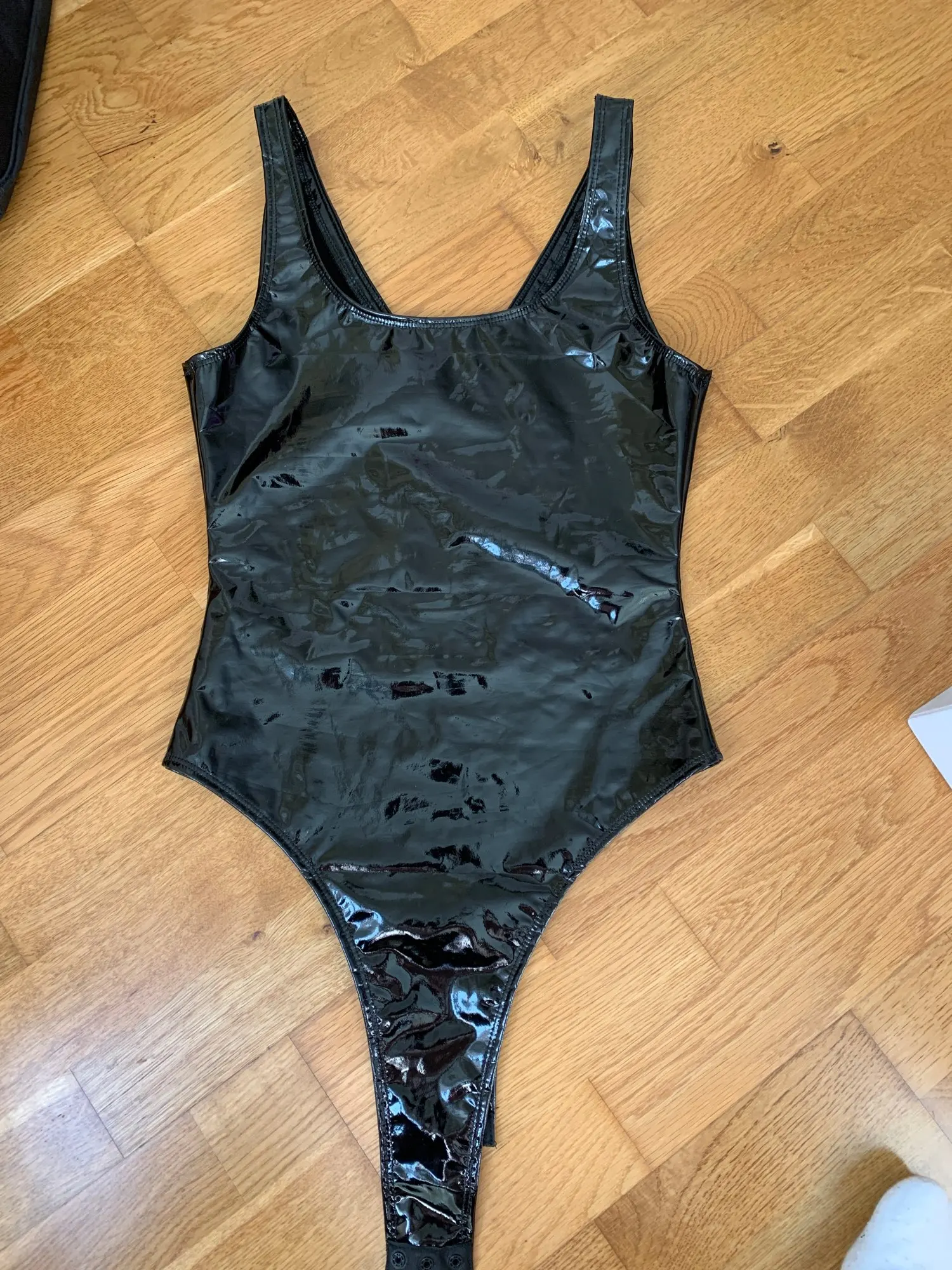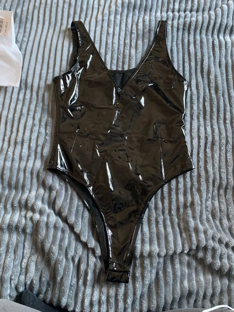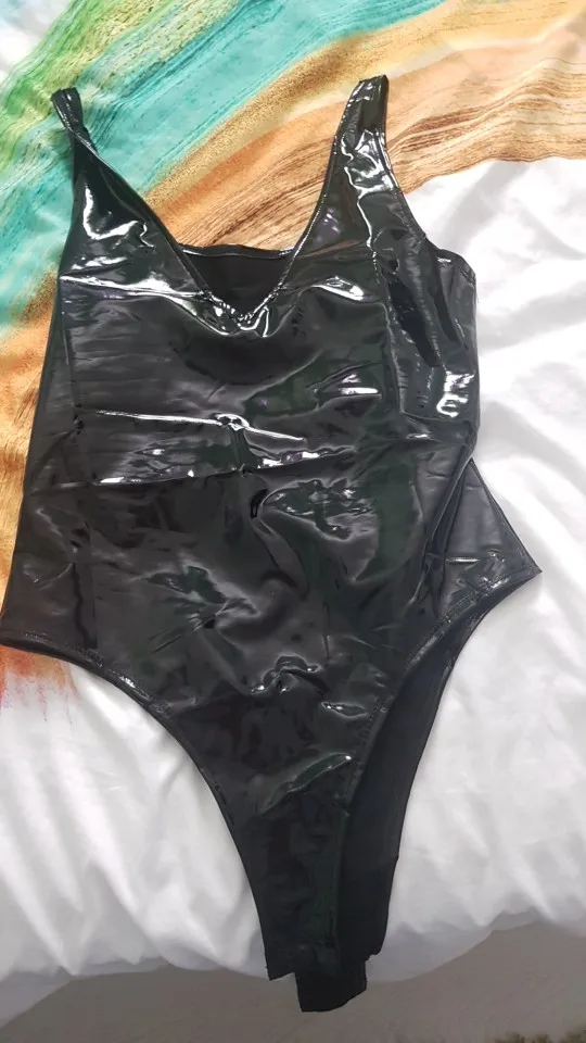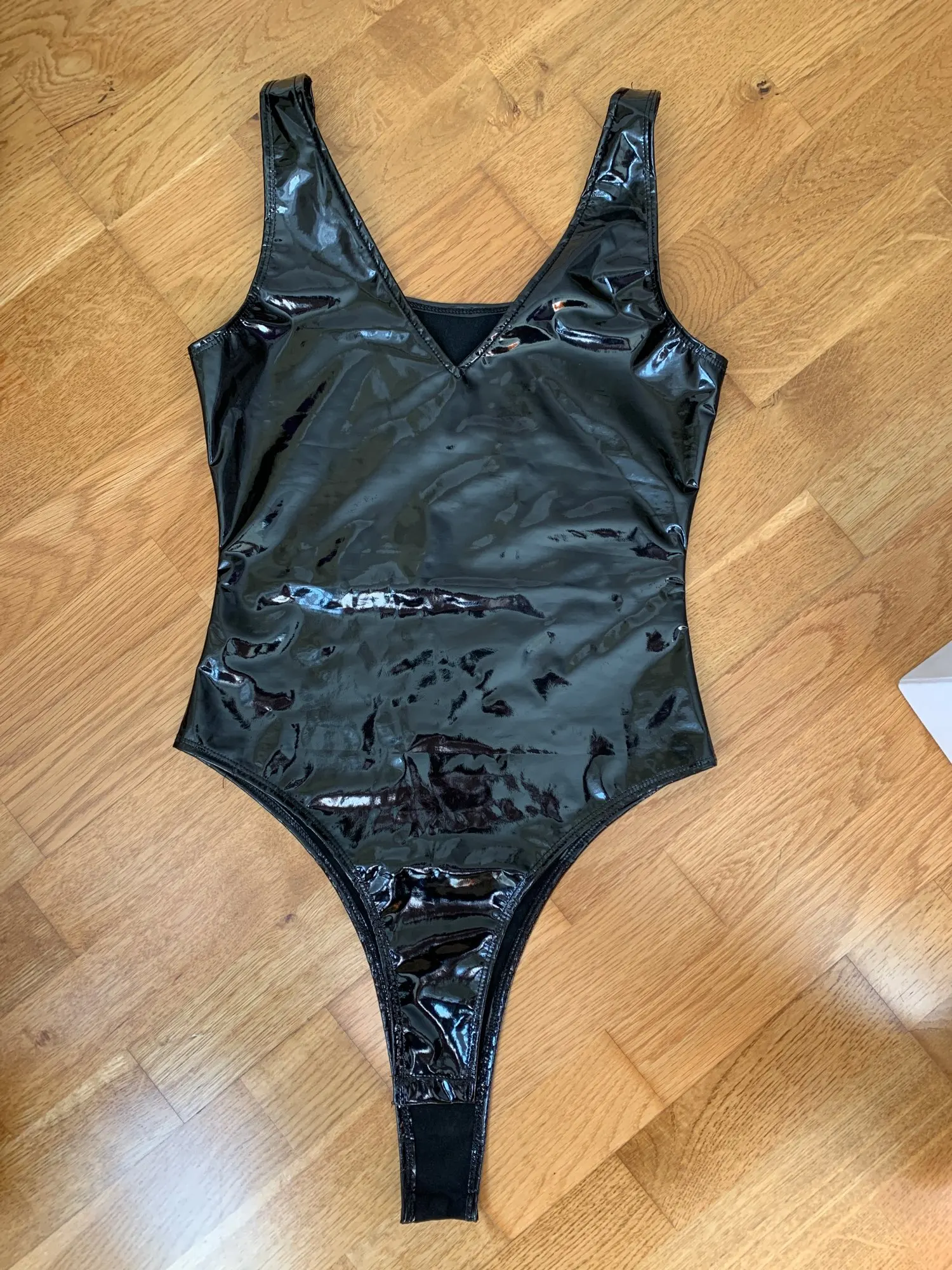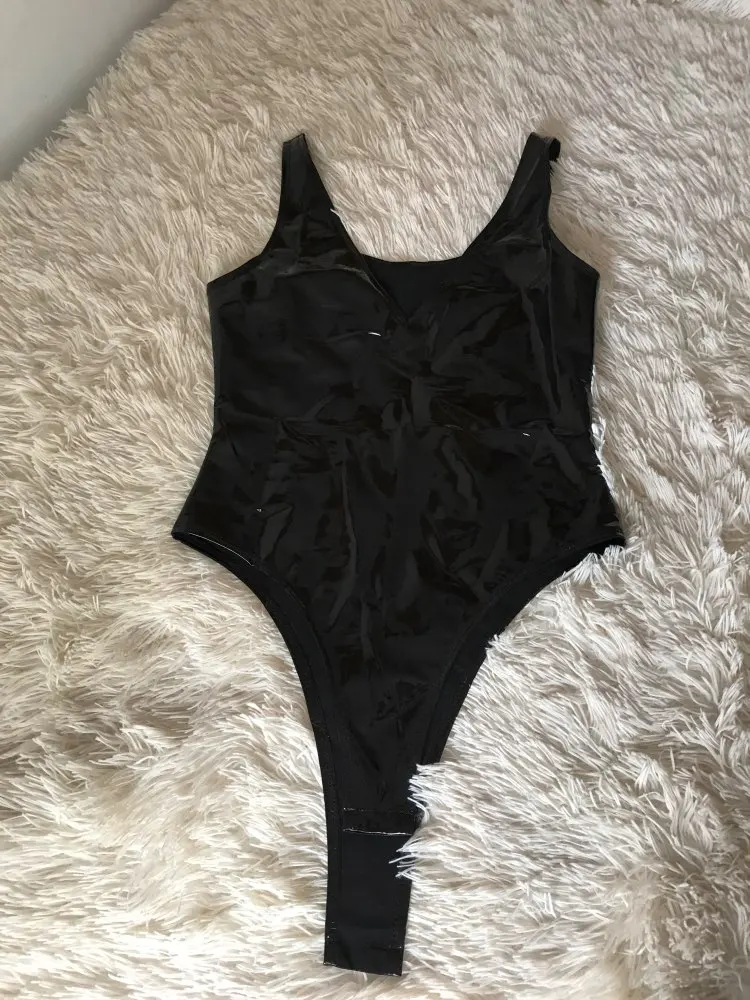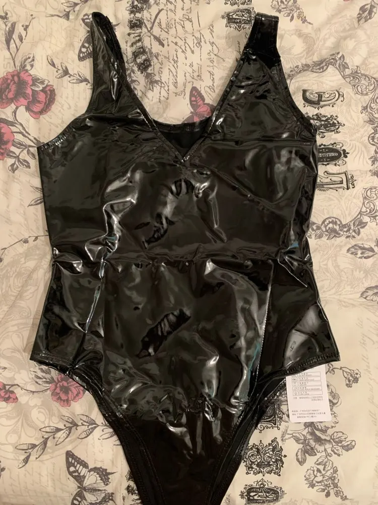 FREE SHIPPING Sexy Leather Black Bodysuit