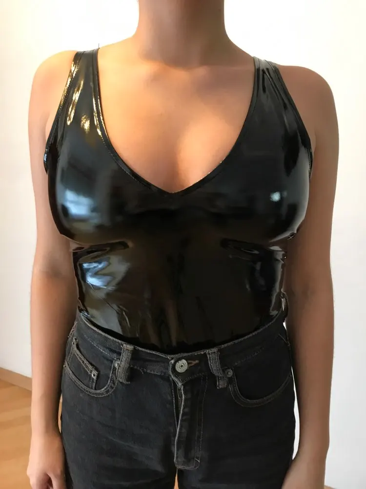 Good clothing and touch. The fabric is similar to a slightly elastic patent. For people with little chest as it crushes it by not having seams on the chest.