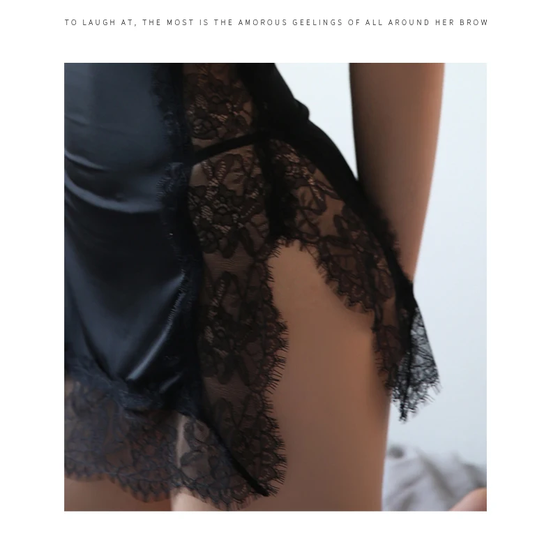 FREE SHIPPING Sexy Nightgown Lace Stitching Hollow Side Split Thin Condole Belt Nightwear Lingerie JKP3621