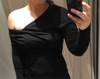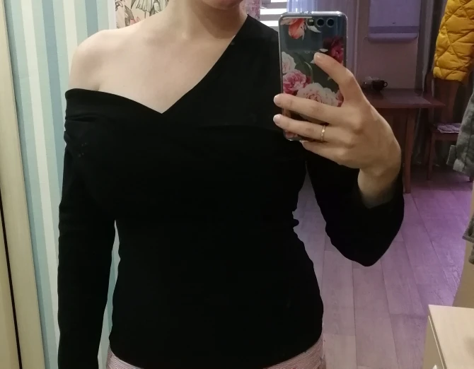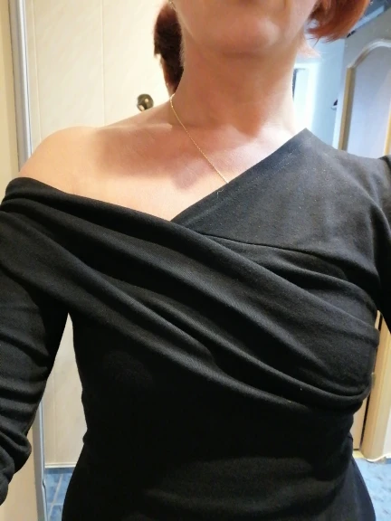 I really liked the idea of the model, the order is made in 25 days, the fabric is tight jersey in a fine hem, and to the touch soft slightly with a velor "plaque" that is, but the color is not deep black, when hand washing shed, there is a suspicion that it will become lighter after several machine washings, although... the weather is still warm, did not wear, But at the first fitting i realized that i would have to regularly correct it, i do not know what the difference of the same model in this store with a lower price..., maybe the fabric is simpler, the seams are smooth and neat, but in places, small threads stick out, at their 154 growth, 59 kg, Og 98 and shoulders 39 i took l, sits well, not long-to the upper bone of the hips... took for 1140, now the chic price is 620 rubles. I think... thank you! I recommend!