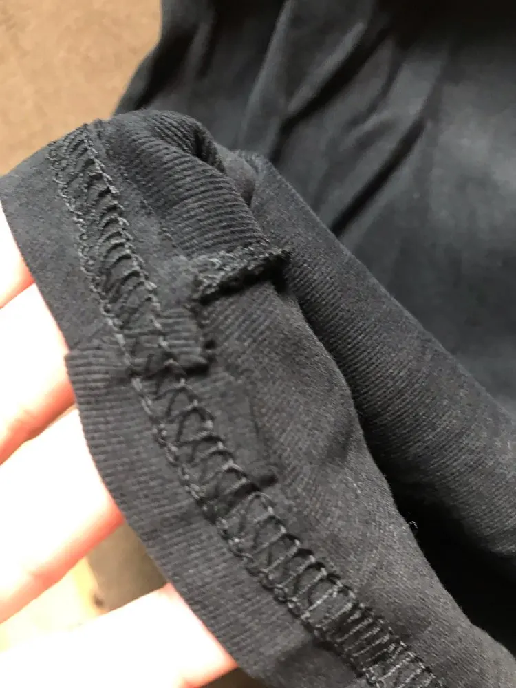 Very good quality blouse. There is a small smell, but i think it will wash and everything will pass. Knitted tight, does not shine through, black saturated color. Threads do not stick out. Highly recommend)