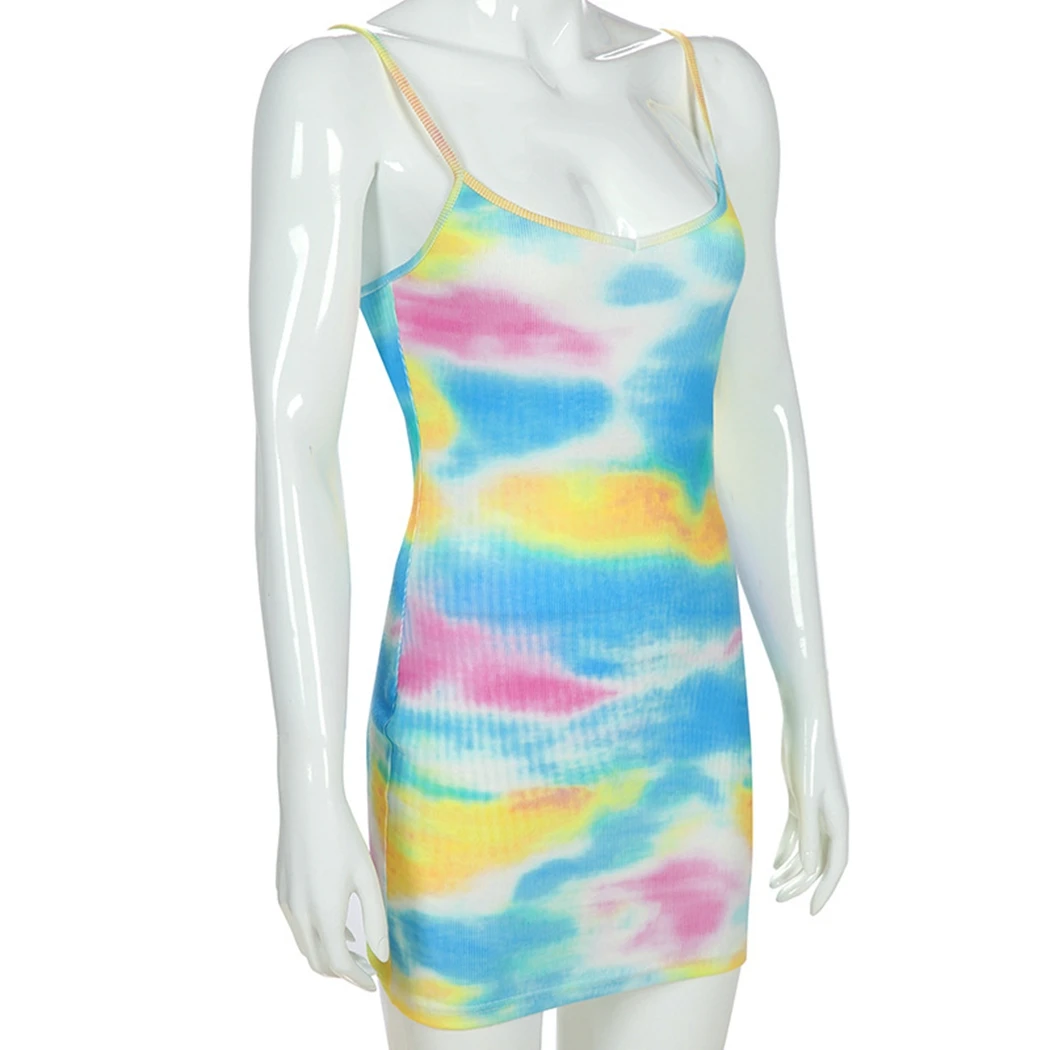 FREE SHIPPING Sexy Party Watercolor Spaghetti Strap Backless Bodycon Dress JKP1842