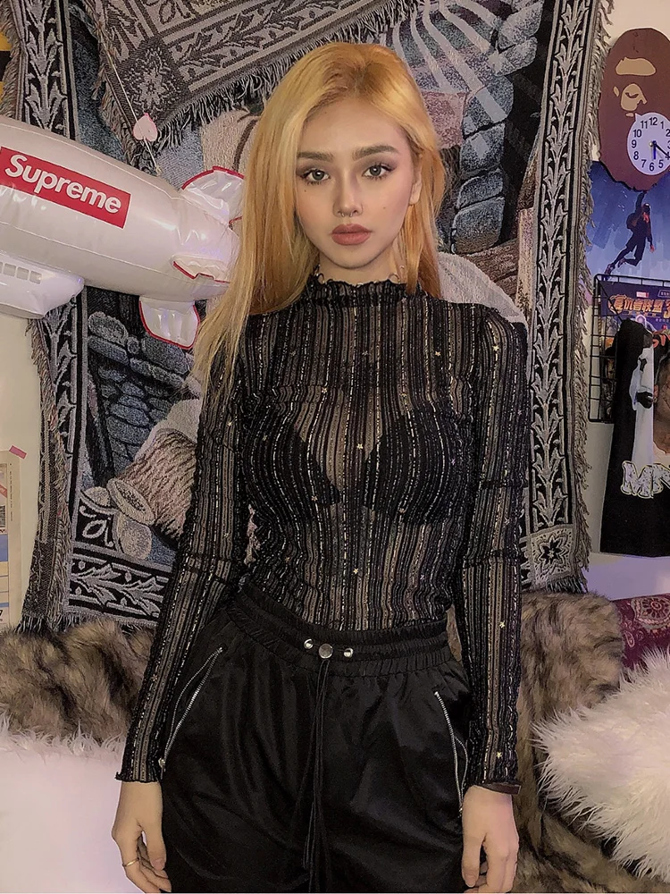 FREE SHIPPING Sexy See-Through Sequins Women Bodysuit JKP3699
