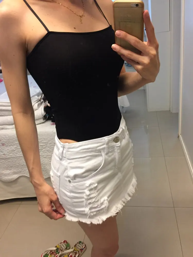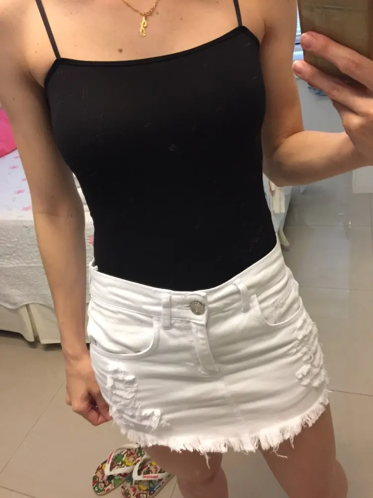 Ele é lindo. Bom material. Uso 36 no Brasil e normalmente peço as coisas M aqui no aliexpress... mas esse body poderia ter pedido o L. Achei que ficou um pouco pequeno. A cava dele fica muito alta, então você tem q usar com short ou saia cintura alta e com risco de aparecer