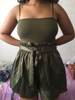 My first time ordering from this app, and I’m impressed. The package came super quick I received the items in less than two weeks. Both items were as described and pictured. The straps are adjustable, and the material is more a stretchy cotton fabric. If you are thinking about buying it go ahead and do so! Definitely worth the price!