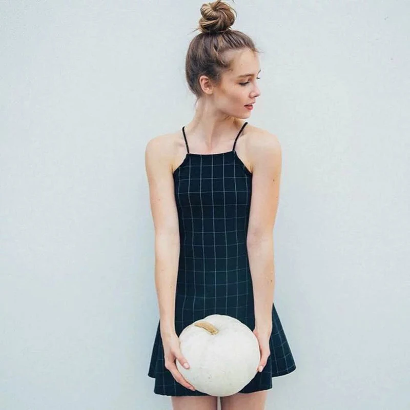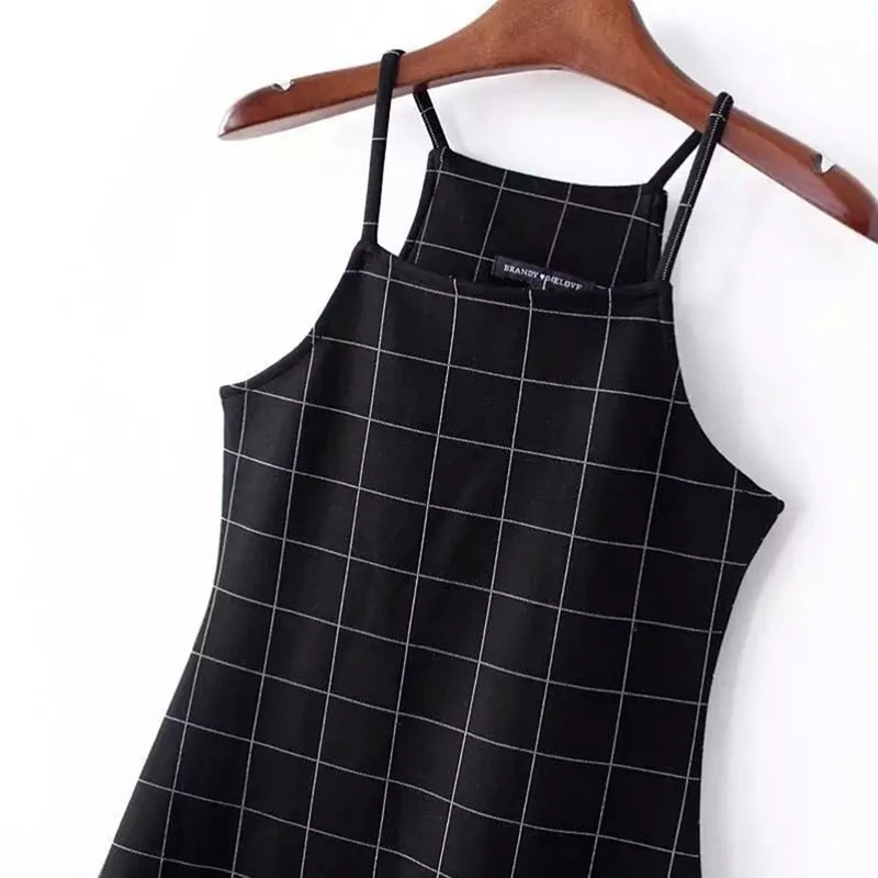 FREE SHIPPING Sexy Spaghetti Strap Dress Women Sleeveless Black Plaid Dress JKP1216