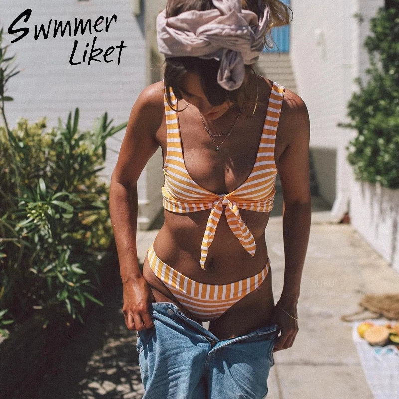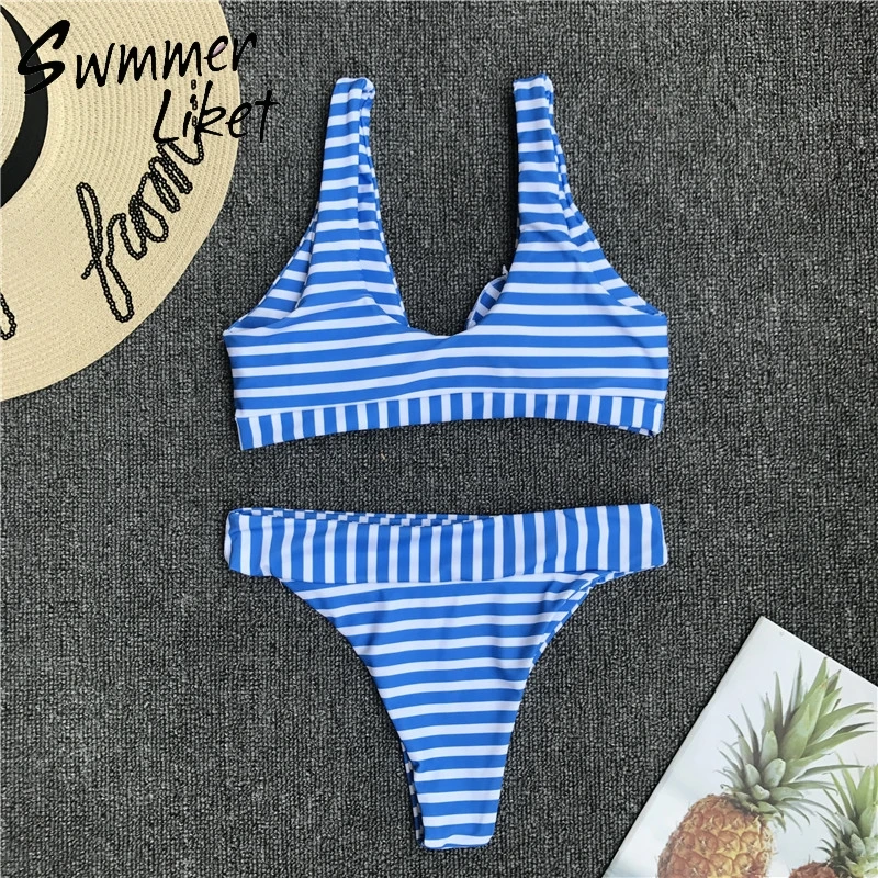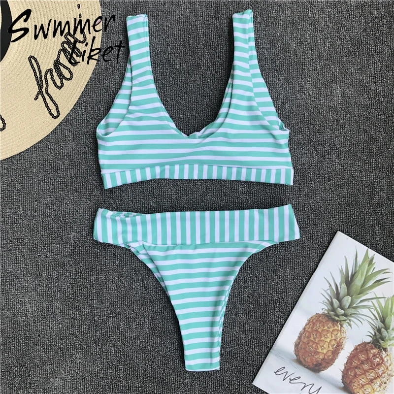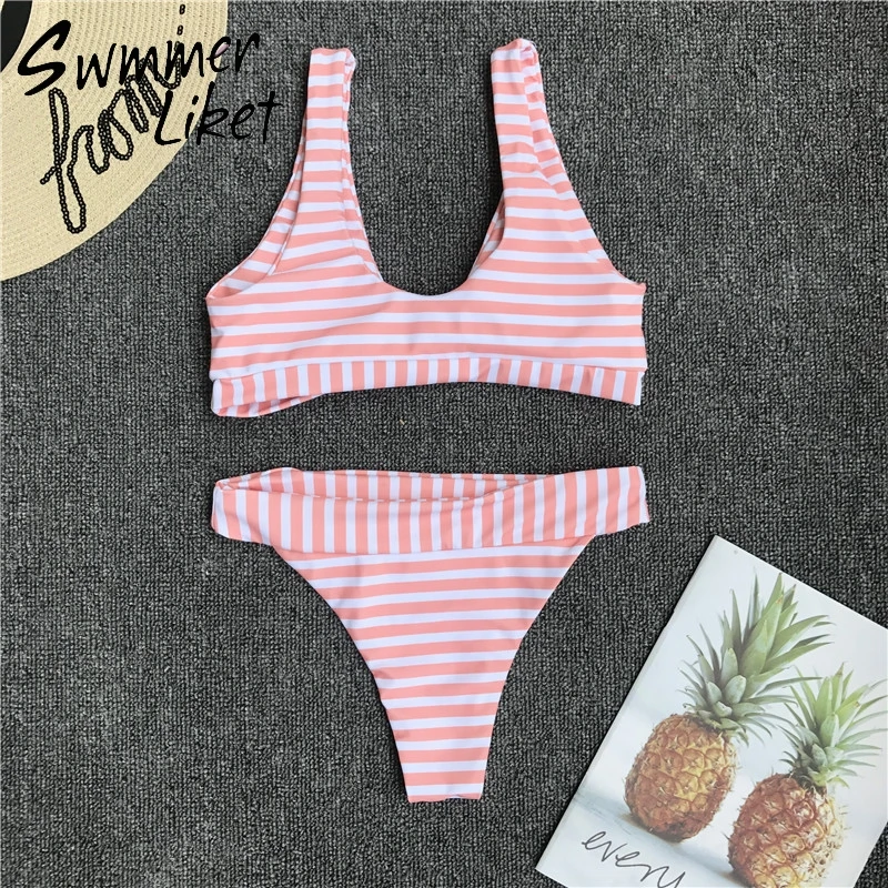 FREE SHIPPING !! Sexy striped bikini Push up high cut swimwear JKP971