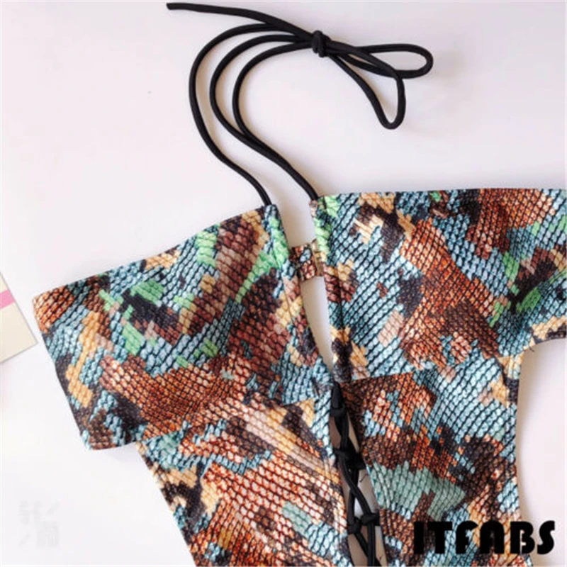 FREE SHIPPING Sexy Swimwear Women African Print Swimsuits Floral Bikini Swimming Body Suit Swimwear For Women Thong One Piece V Neck Swimsuit JKP2412