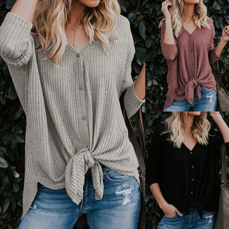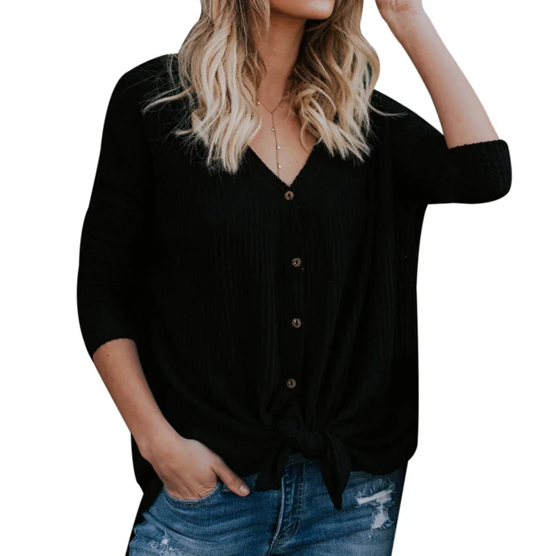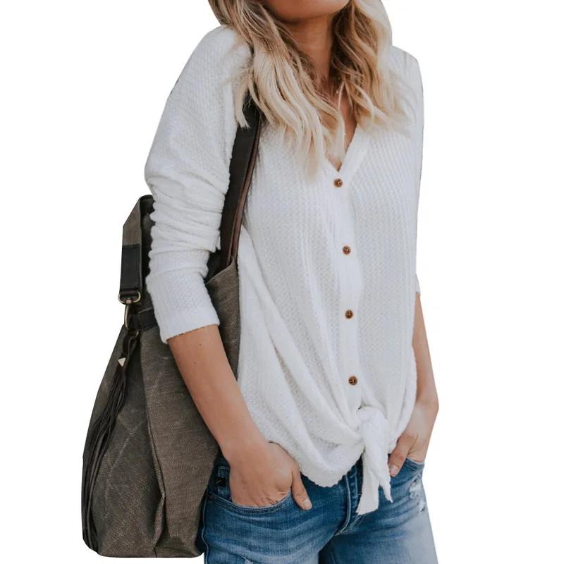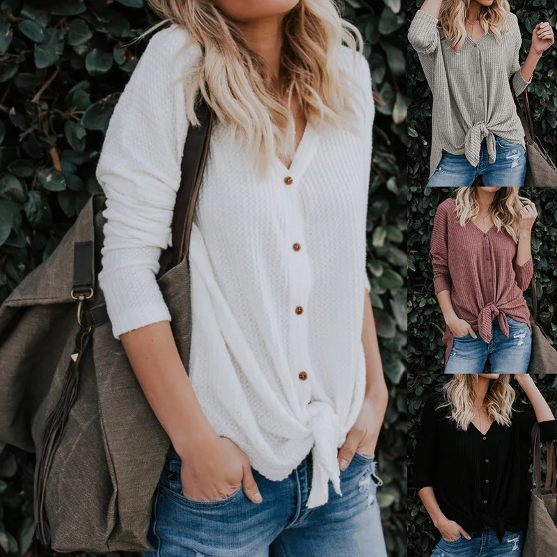 FREE SHIPPING Sexy V Neck Knitted Button Shirt JKP1173