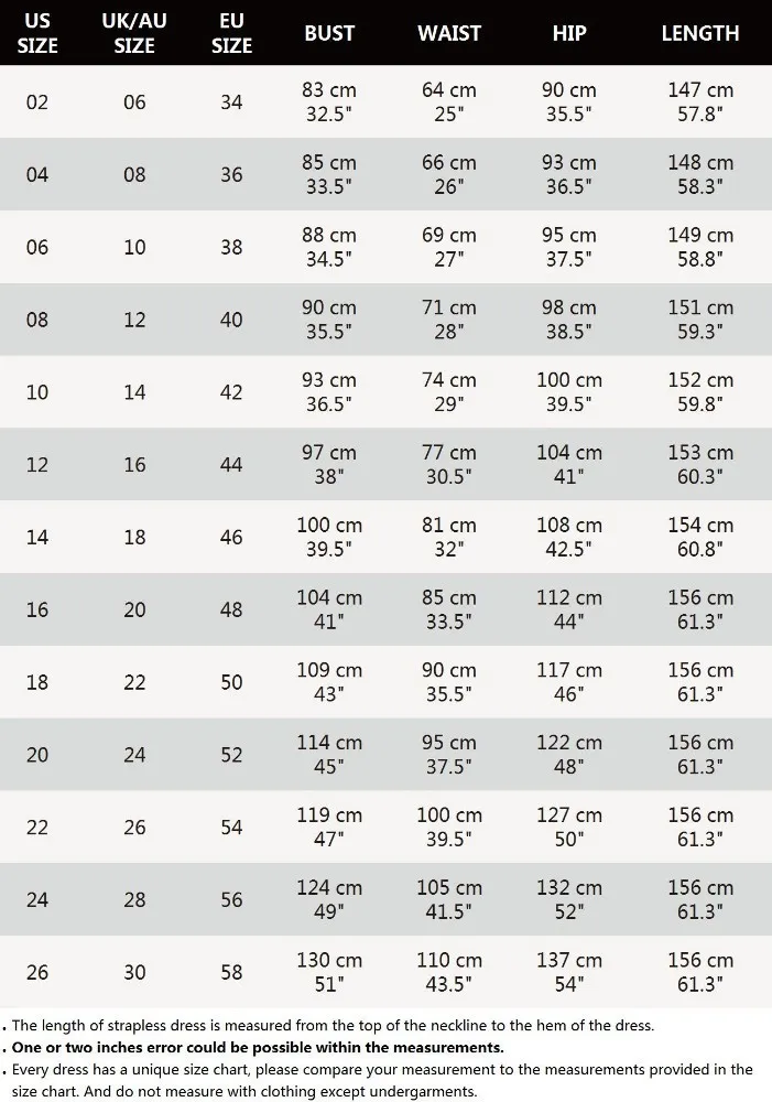 Beautiful dress, arrived in just over 02 weeks in chile. I measure 1,56 and weight about 70 kilos order size 16 i stay a little large i will shorten you in the suspenders, might be a 14 for the next one. But it's beautiful as seen in the photo. I recommend 100% for fast, quality and price