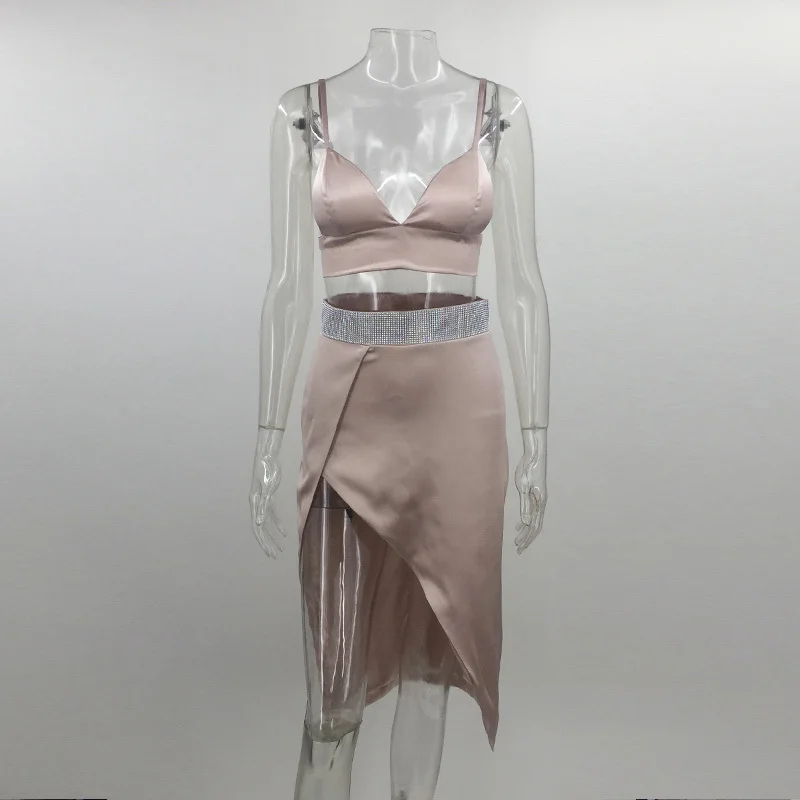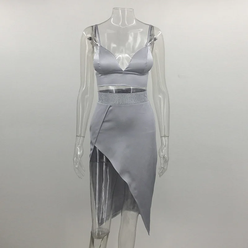 FREE SHIPPING Sexy V Neck Silk Satin Sleeveless Vintage Two Pieces Dress JKP1086