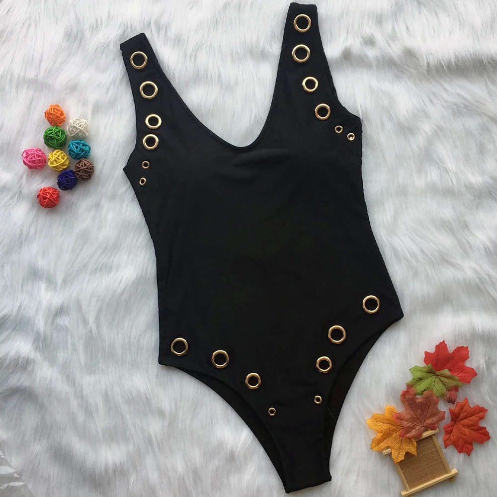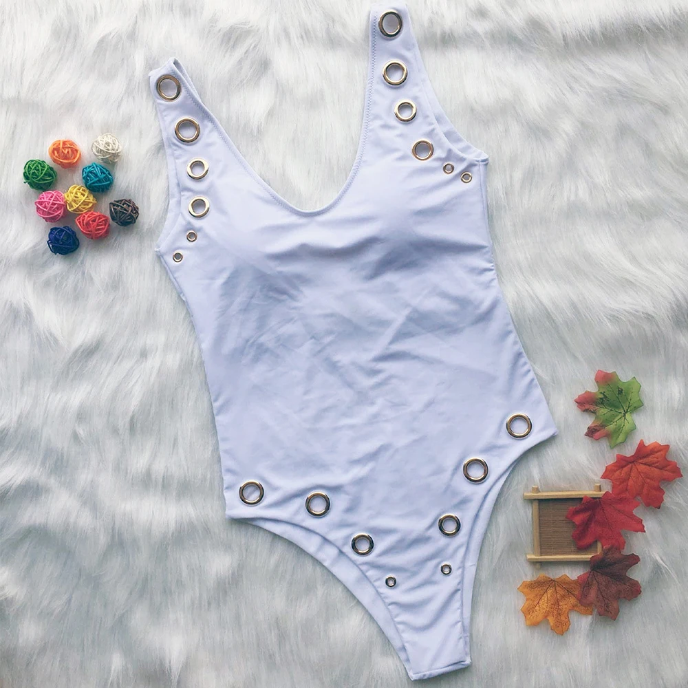 FREE SHIPPING Sexy V Neck swimsuit one piece swimwear women High Cut Leg Monokini femme eyelet trikini bandeau Beachwear Bodysuit Bathing suit JKP2408