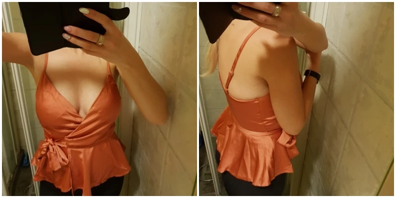 Fast delivery. Super happy and satisfied with the little top! He's just beautiful. I took a size S. I recommend selling at 1000%!!!!