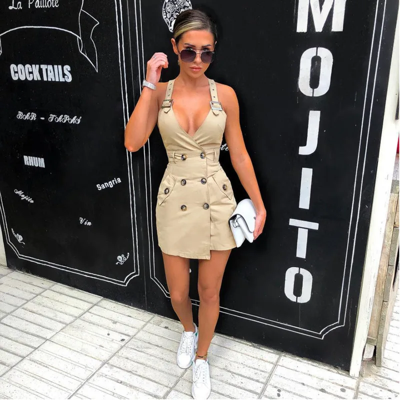 FREE SHIPPING Sexy Women Dress Empire V Neck Wrap Button Pocket Blet Bodycon Dress Elegant Casual Mini Summer Vestidos Female 2019 JKP1937