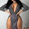 FREE SHIPPING Sexy Women Long Sleeve Sequin Split Dress Glitter Party Dresses JKP3763