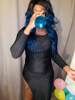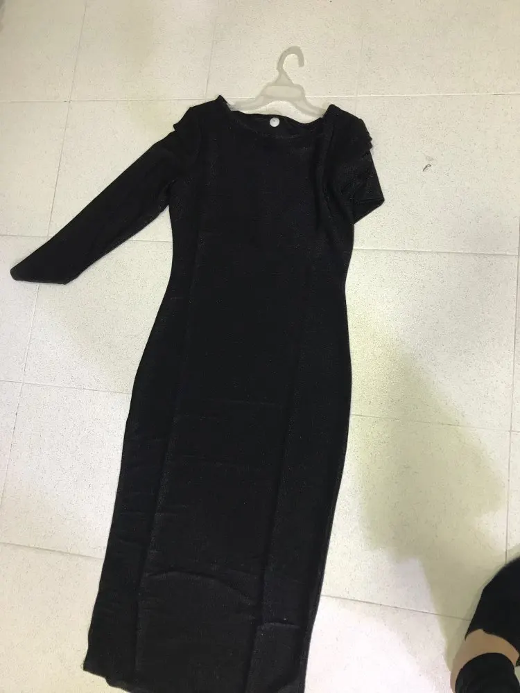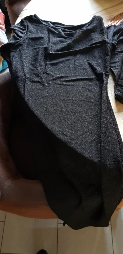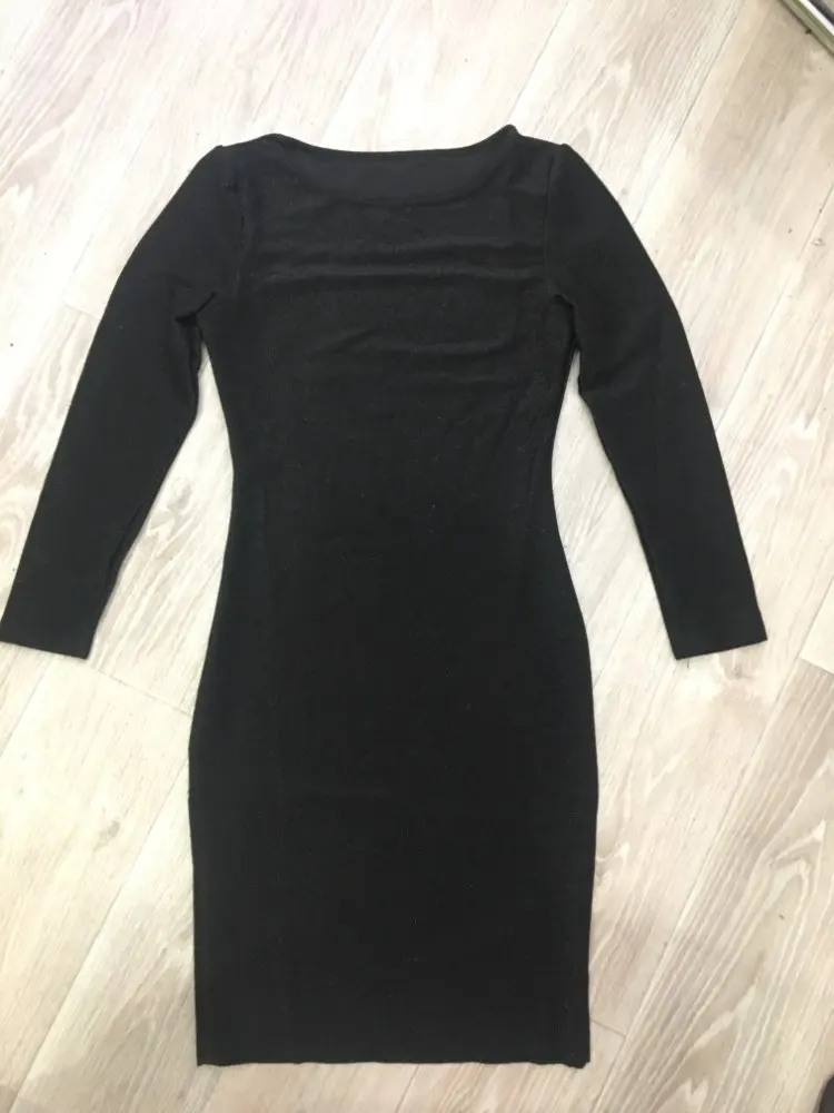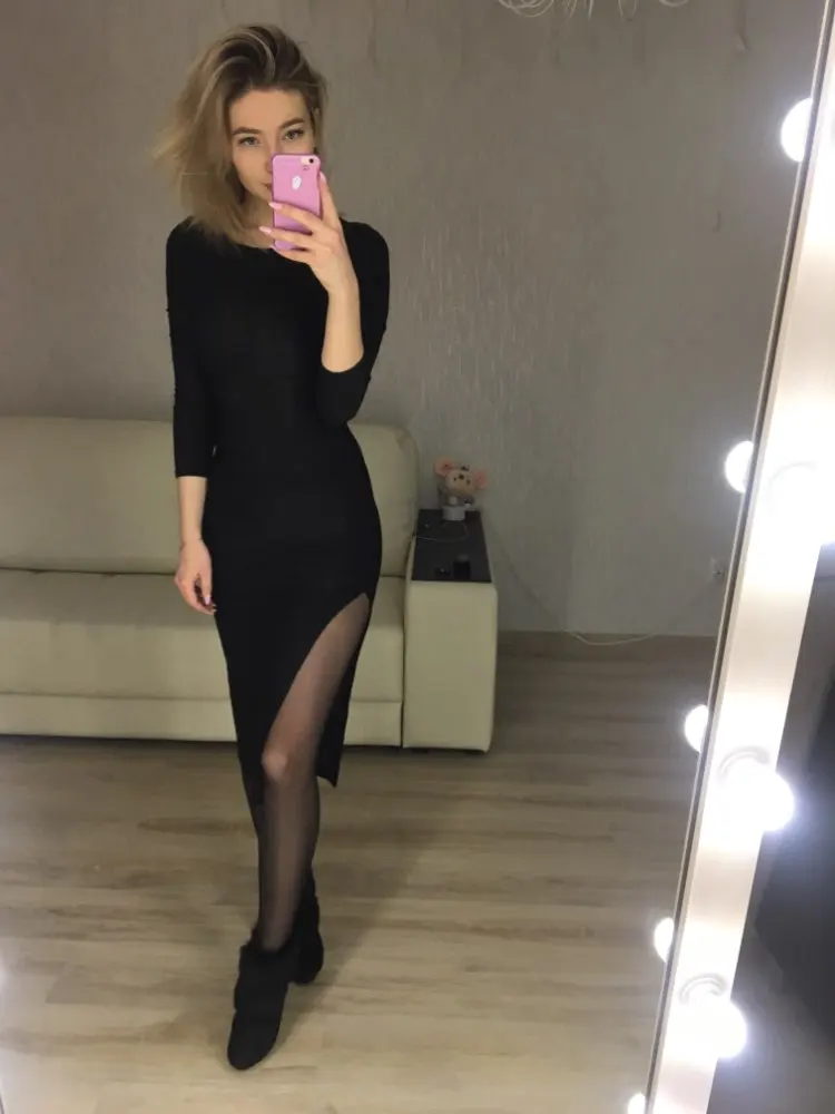 The dress is cool! Quite dense, but slightly shines through on the bulges. Color Black with Lurex. The cutout on the side, not in front, but also looks good, you can turn it a little essence and will be in front. The length of the height is 173 just below the knee. On the parameters 89-62-97 took S