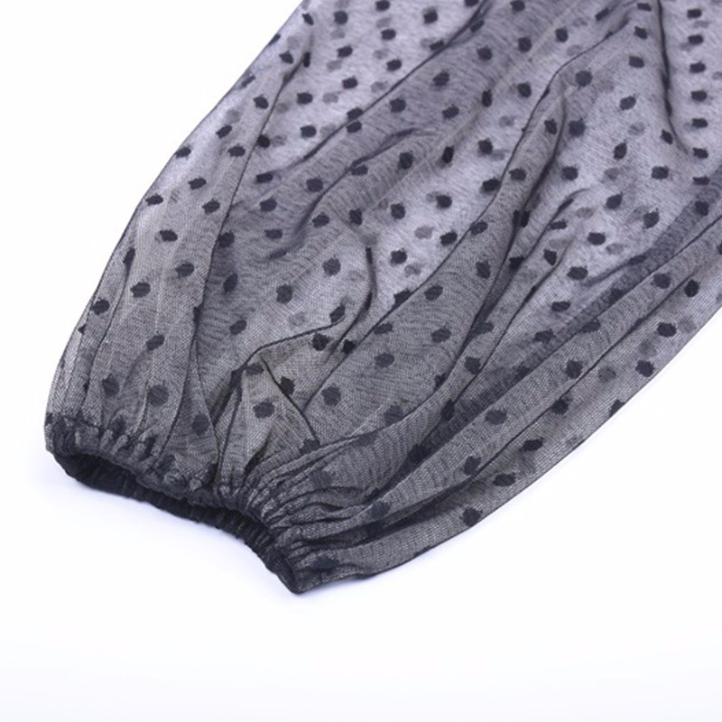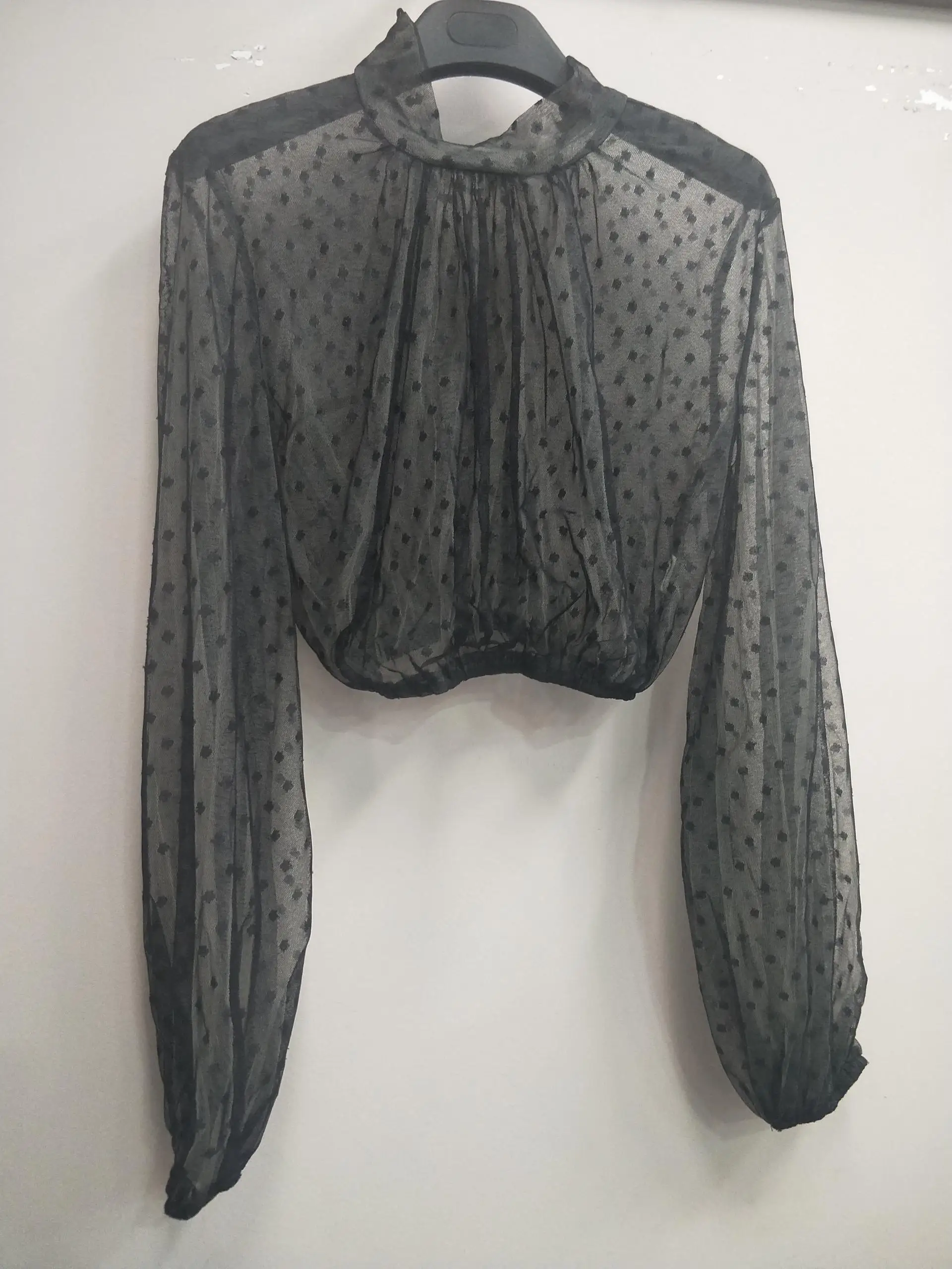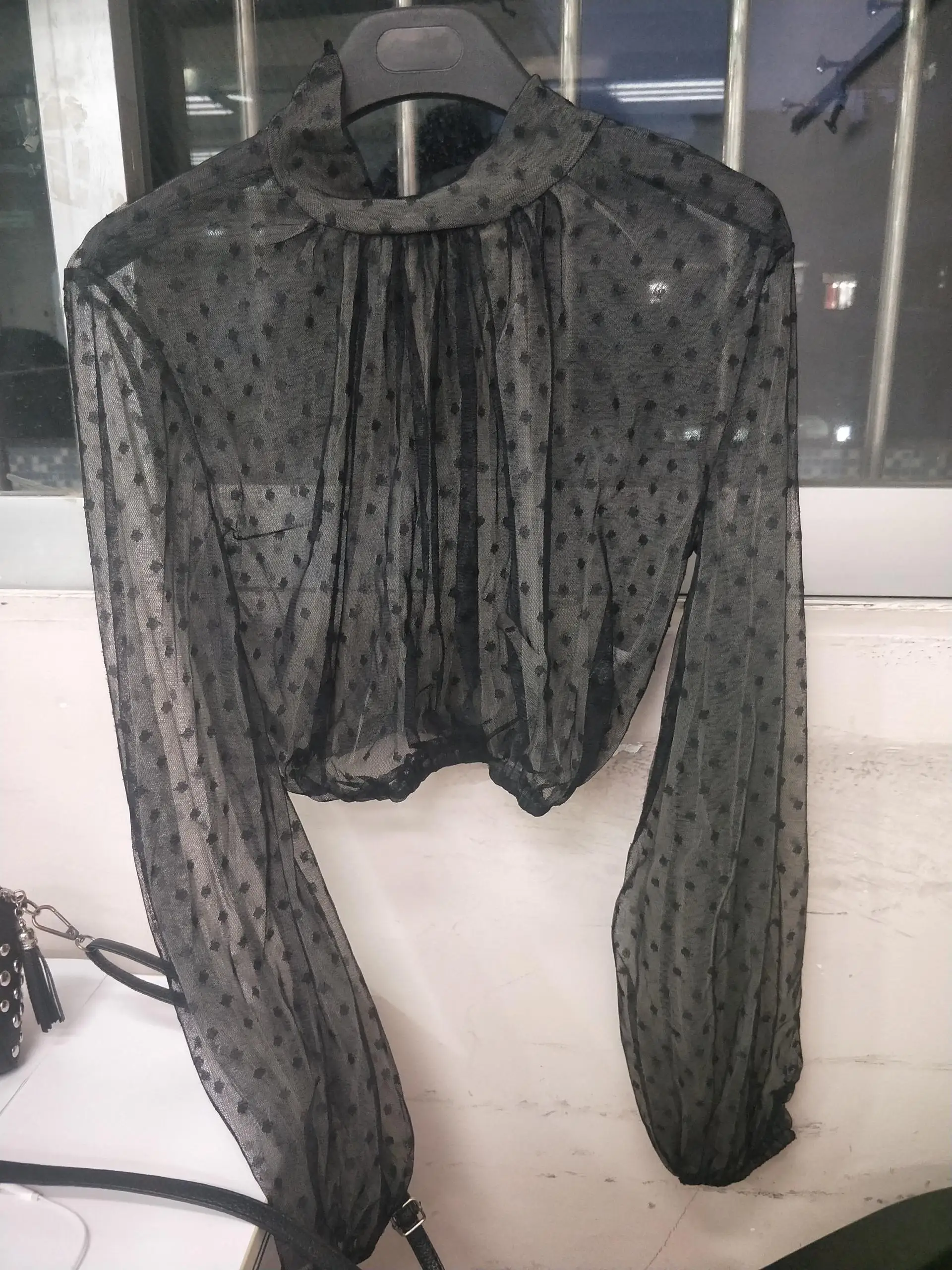 Blouse bomb!!!!!! ordered at your risk, not a little adequate recall, not one, but risked, the blouse really liked, i realized that the last photo of the store is a real product. I ordered for an evening dress, i was looking for such a thing. The blouse is gentle, super sexy and very very effective. Looks expensive, sat down like poured, the size m on the parameters 92/61/92 is perfect. If you need the effect is more magnificent, you just need to order the size more. At the waist and sleeves hidden elastic bands, due to this stretches there and there, but do not press at all. Behind the neck 2 buttons. The blouse is odorless, without extra threads, consists of 2 types of fabric that stretch a little. one is lighter, as if a very-very fine grid, the top grid, but the other is darker, which creates the effect of the smoky transparency, sexy, but not provocative. purchase is happy for all 100%. Pictures from top to bottom, because not very successful and do not convey reality, unfortunately. It came in 4,5 weeks. I recommend