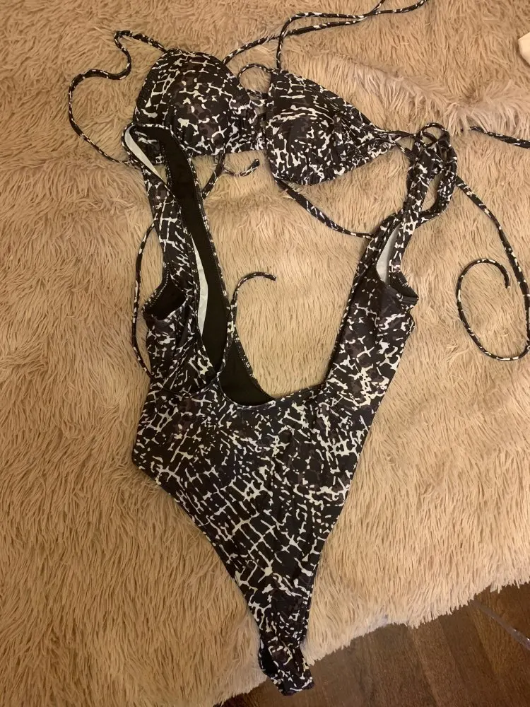 Arrived very fast, less than two weeks from the moment of order. Tracked all the way. My parameters: height 182 cm, og 95, opg 83, ob 95. I was very doubtful when buying because of the growth, because the chinese rarely make suitable for tall girls swimsuits, but this became an exception. The growth is perfect! Nowhere pulls. I sat down like sewed for me. Behind on the pope is slightly assembled and on the back is frayed, but not critical. Because of the model, you can rewind the ropes there very pretty. The swimsuit itself is medium in thickness, the print liked in real life very much. The bodice looked big, but the chest unit sat perfectly, does not hang out. Damn happy with the purchase <3 thanks! If you are above 180 cm, then take l. it is not huge in size, and the growth is the most.