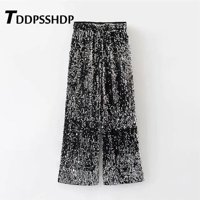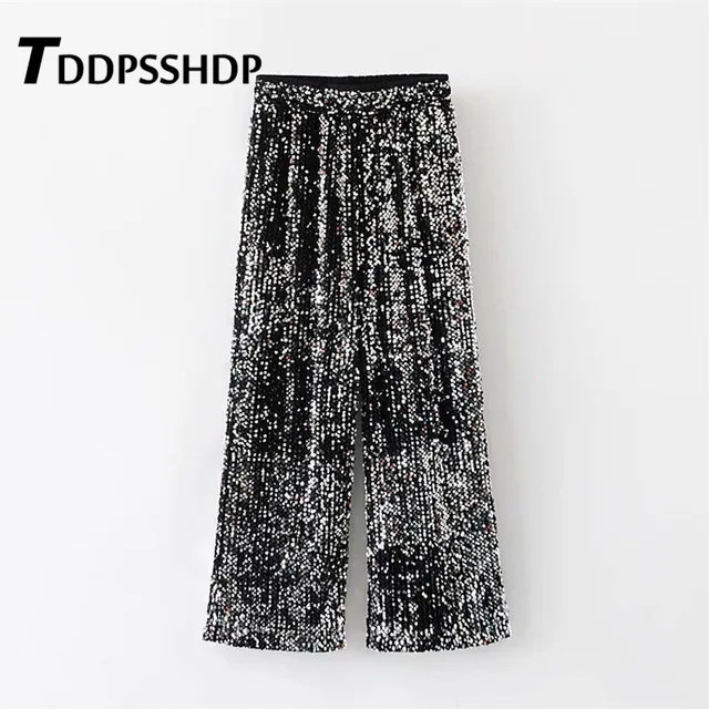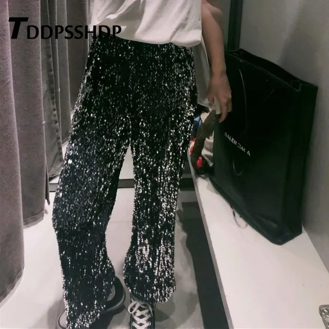 FREE SHIPPING Shiny Sequins Elastic Waist Women Pants 2019 New Arrive Fashion Casual Spring Trousers JKP1927