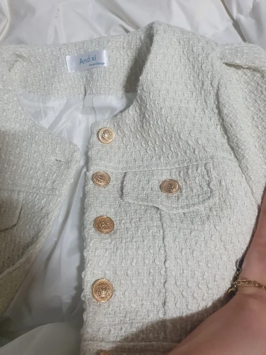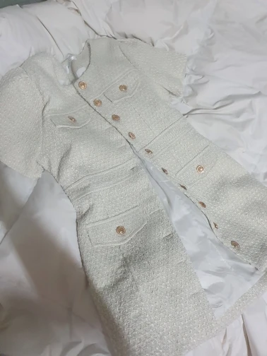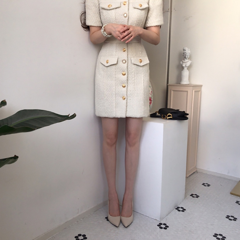 FREE SHIPPING Short Sleeve Mini Dress Autumn Elegant Single Breasted Tweed Puff JKP5935