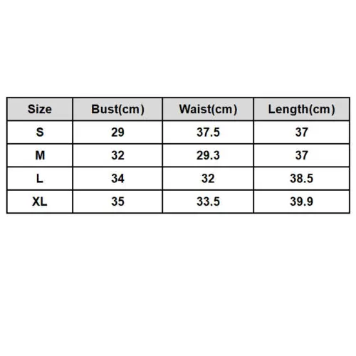 | Size | Bust(cm) | Waist(cm) | Length(cm) |