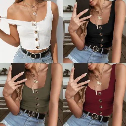 FREE SHIPPING Short Tank Top Buttons JKP1355