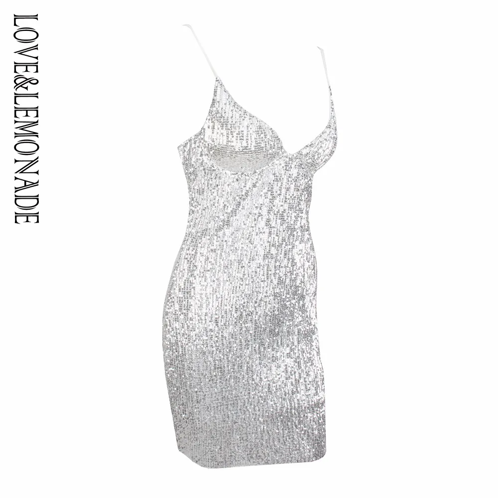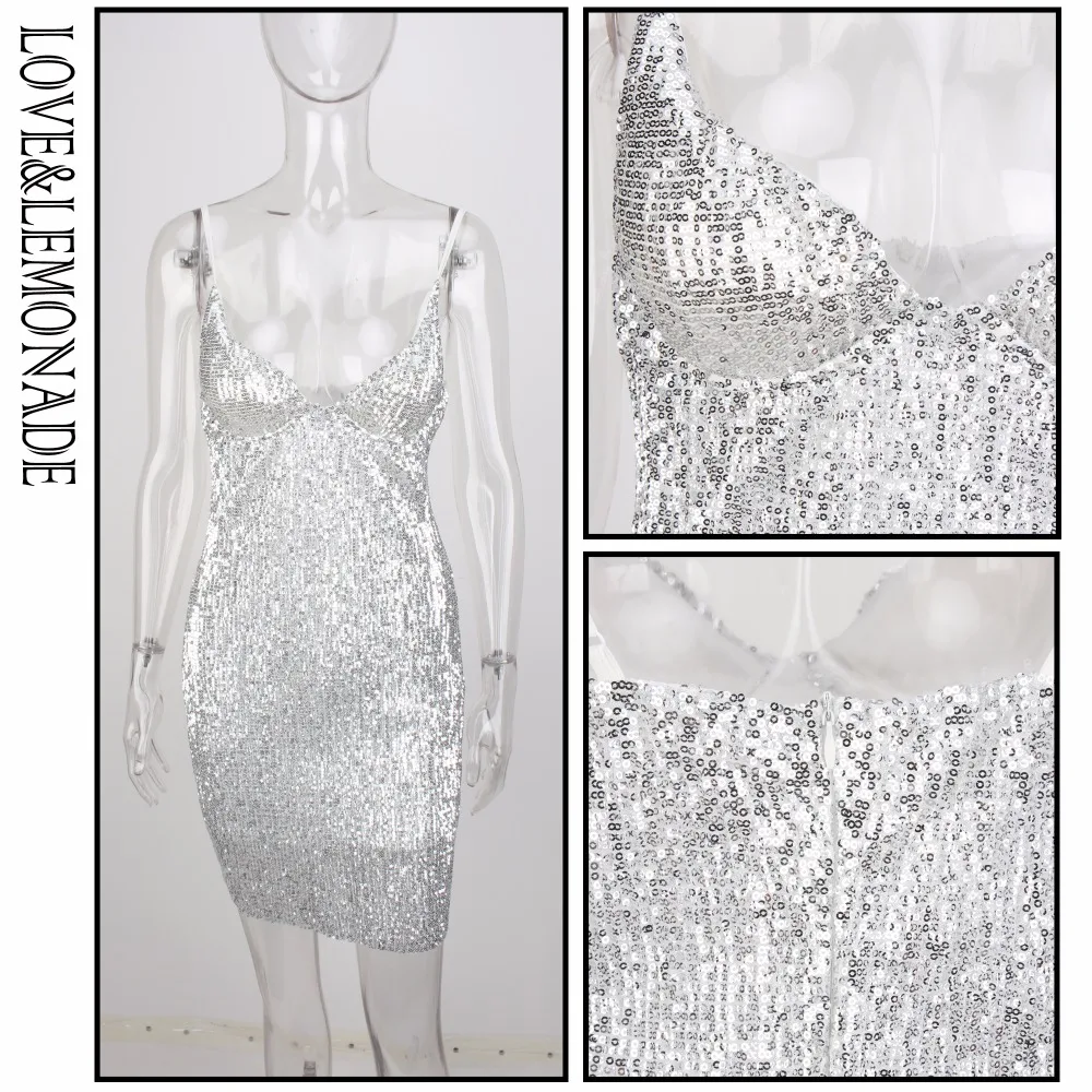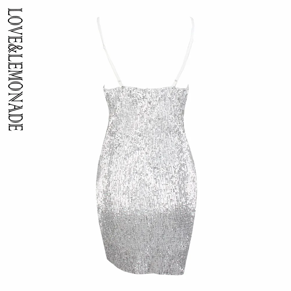 FREE SHIPPING Silver V-Neck Stretch Sequin Material Gather Party Dress JKP742