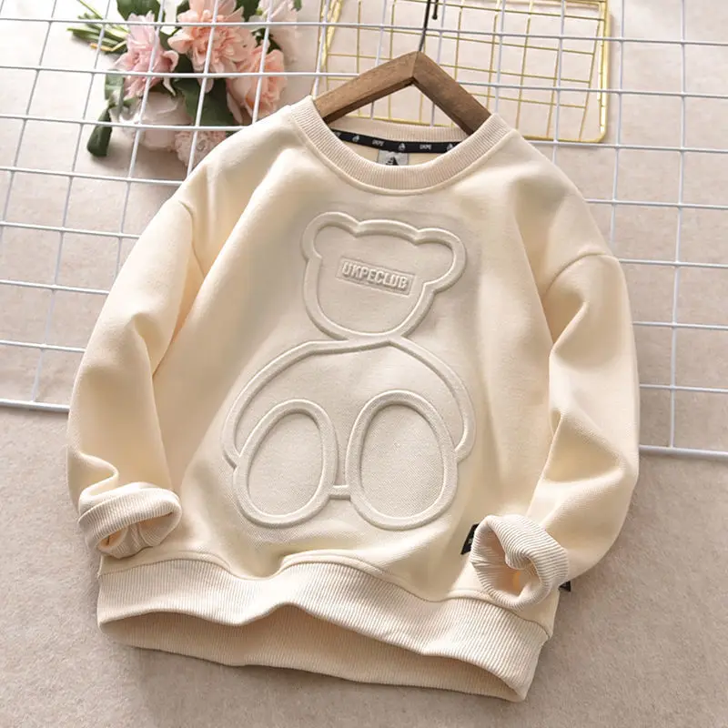 FREE SHIPPING Simple Elegant Embossed Bear Letter Sweatshirt Hoodie JKP6095