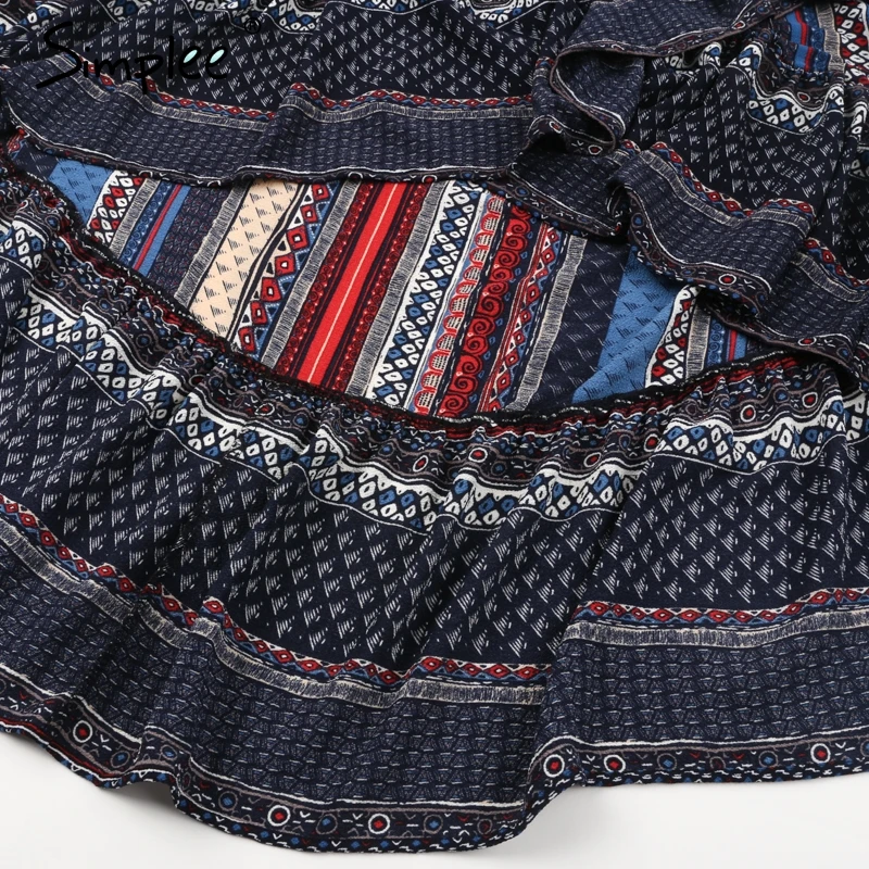 FREE SHIPPING Skirt Vintage Ruffle Boho Print JKP1331