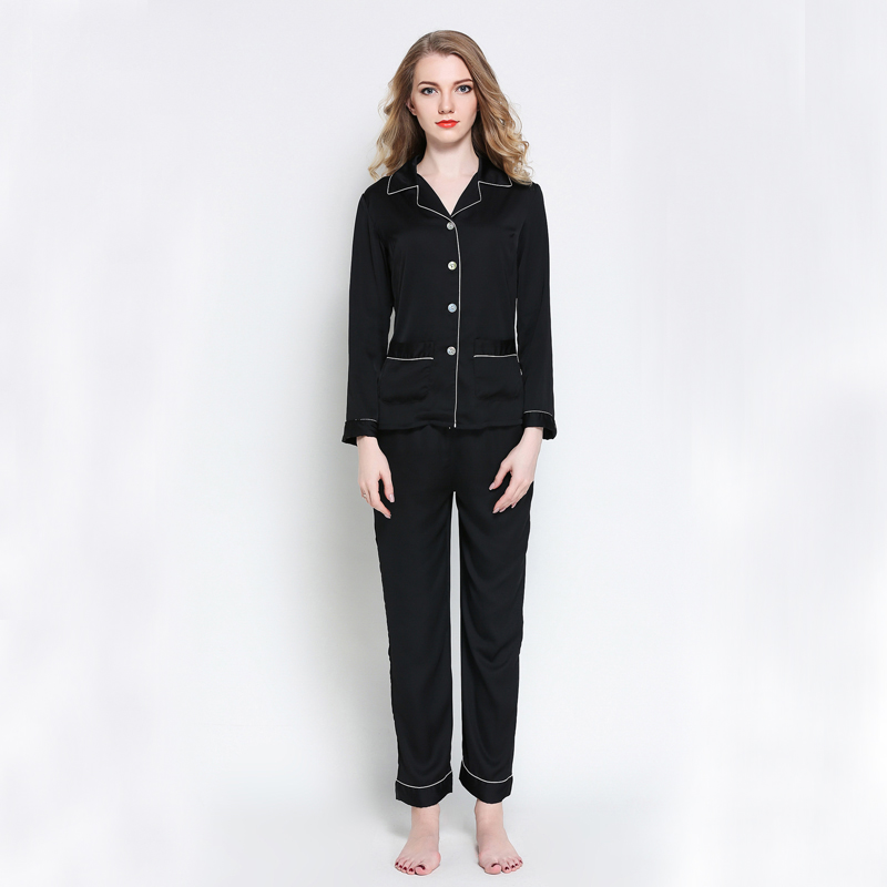 FREE SHIPPING Sleepwear Solid Sleep Set Turn-down Collar Button Pajamas Suit JKP1127
