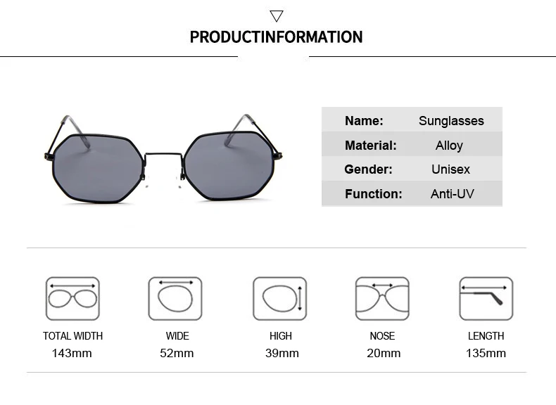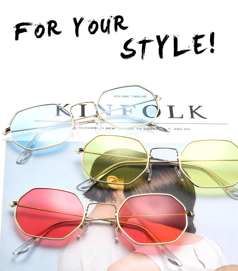 FREE SHIPPING Small Frame Polygon Clear Lens Sunglasses JKP774