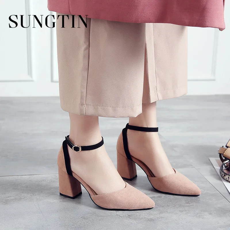 FREE SHIPPING Solid Chunky Heel Sandals JKP1351