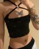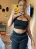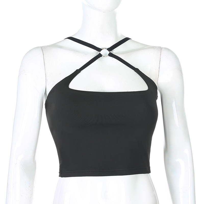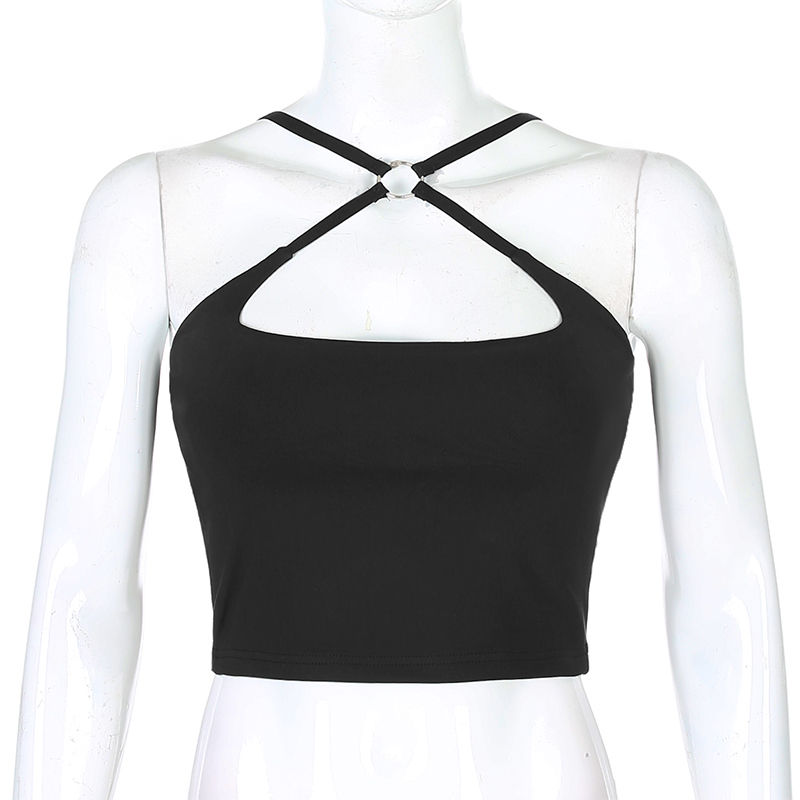 FREE SHIPPING Solid Clubwear Cross Cut Out Crop Top JKP4552