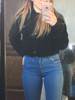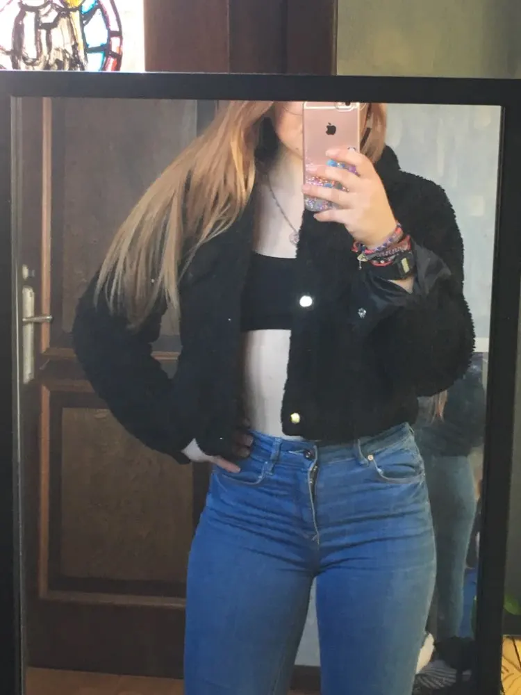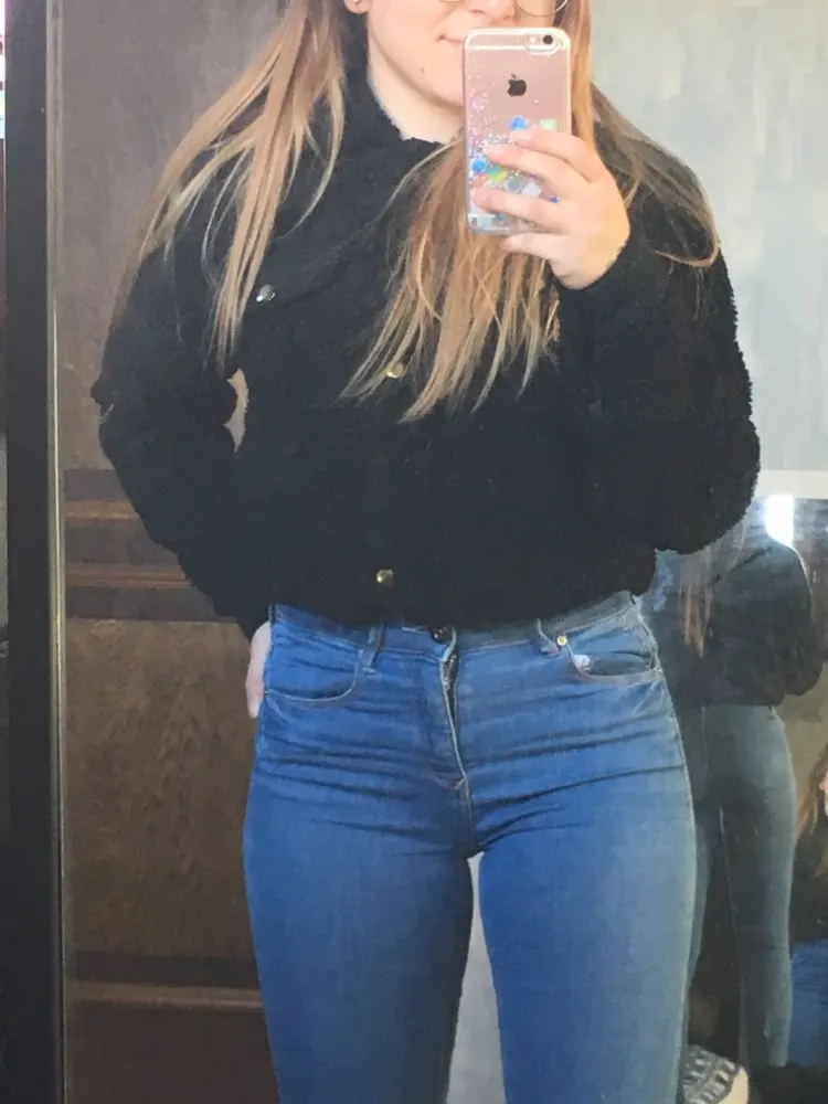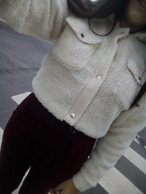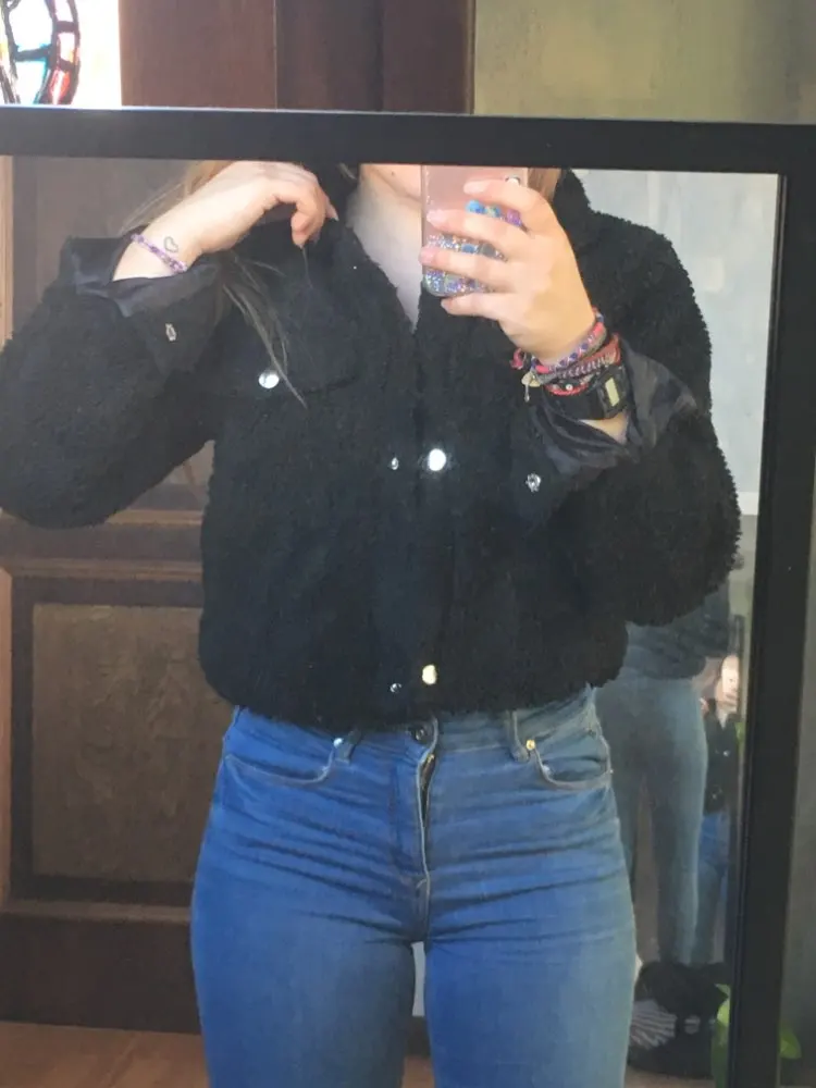 I LOVE IT! It’s so cute and perfect! I’m 5’0 and got a size S. I’m big breasted (DD) and it BARLEY closes up. It is as described, keeps me nice and warm and looking good. It fits me above my belly button. (Skadoosh__)