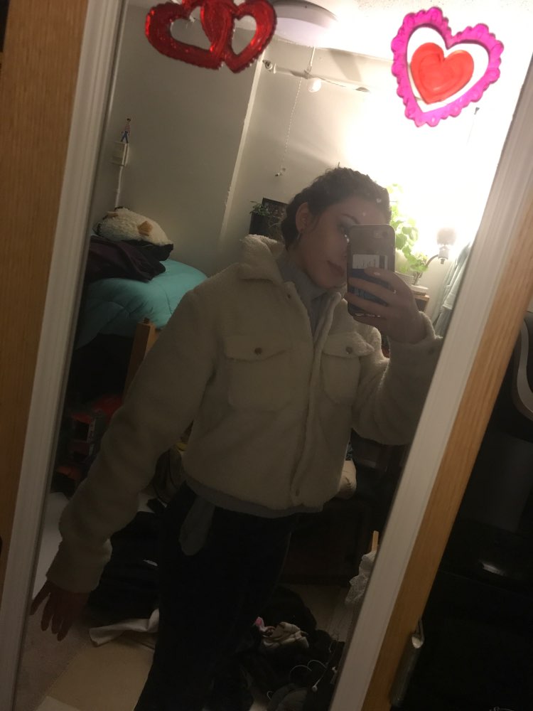 I LOVE IT! It’s so cute and perfect! I’m 5’0 and got a size S. I’m big breasted (DD) and it BARLEY closes up. It is as described, keeps me nice and warm and looking good. It fits me above my belly button. (Skadoosh__)